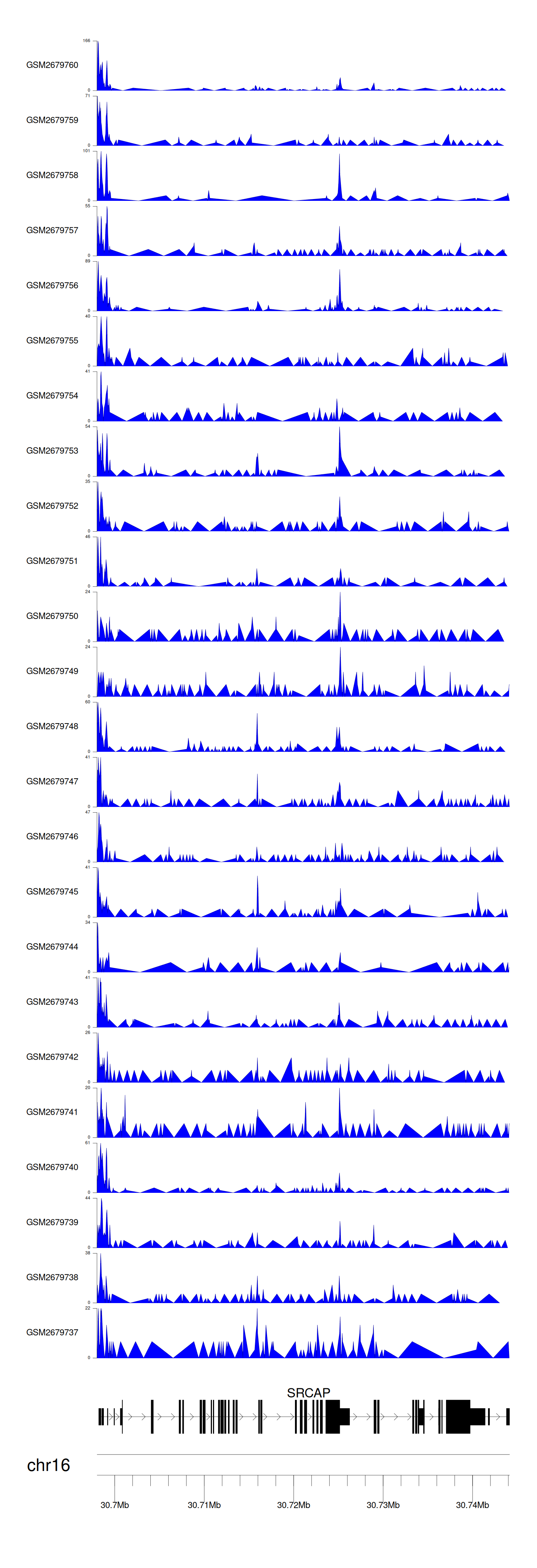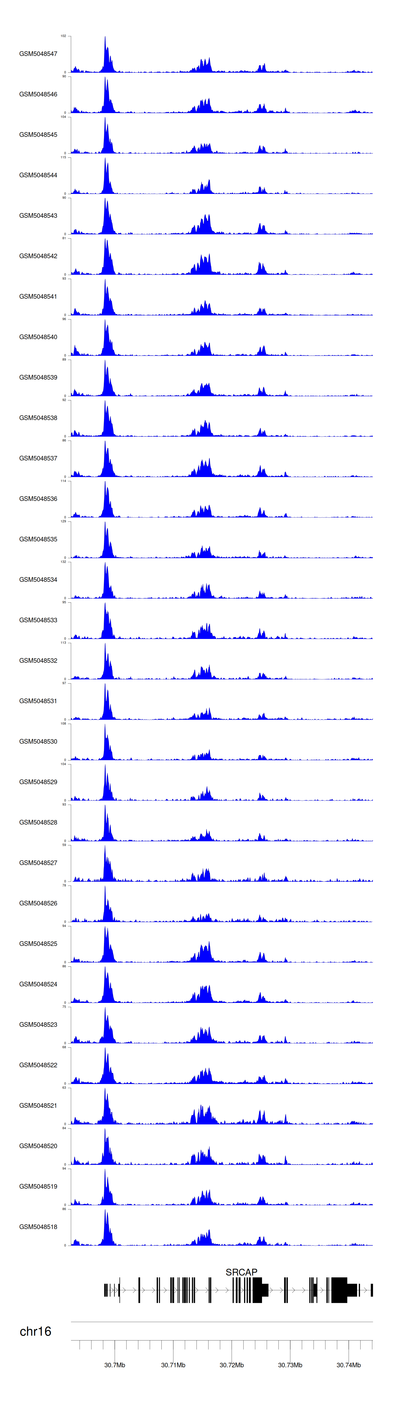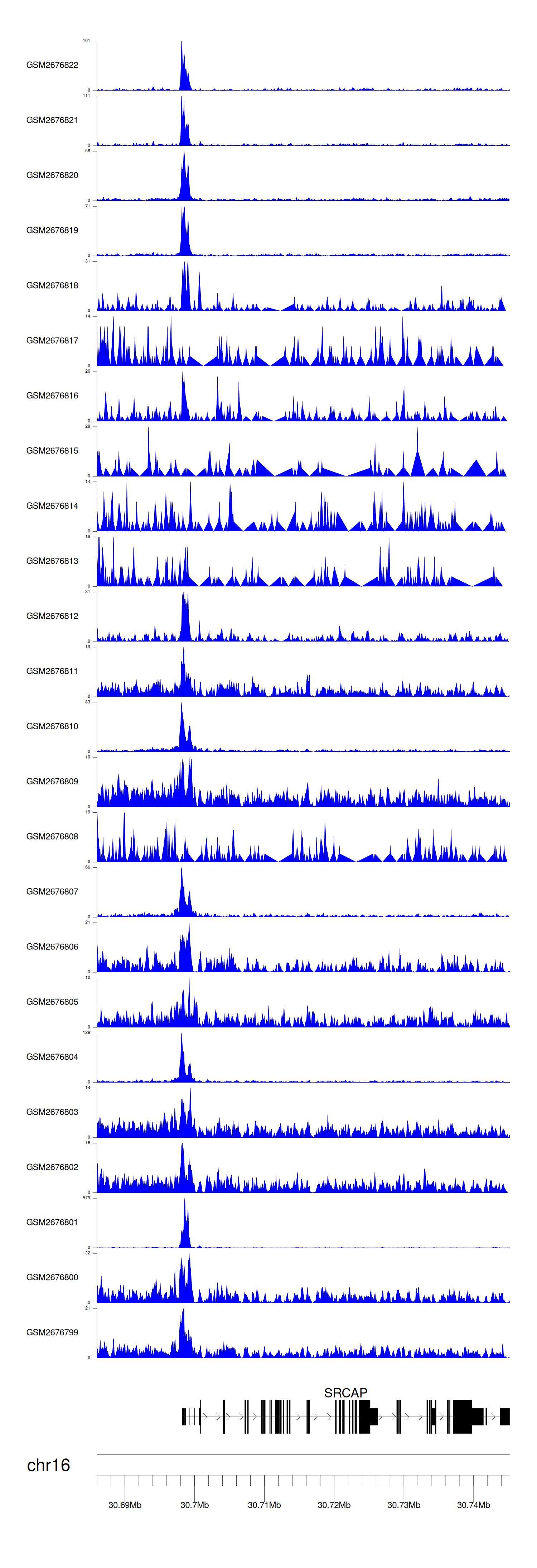 > Dataset: GSE100376 - SRCAP peak across samples