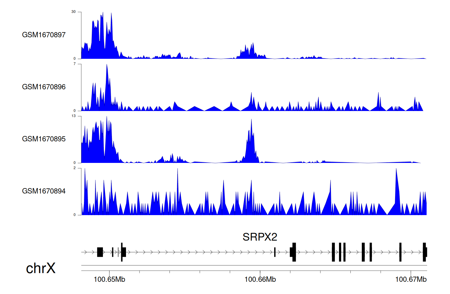 > Dataset: GSE68402 - SRPX2 peak across samples