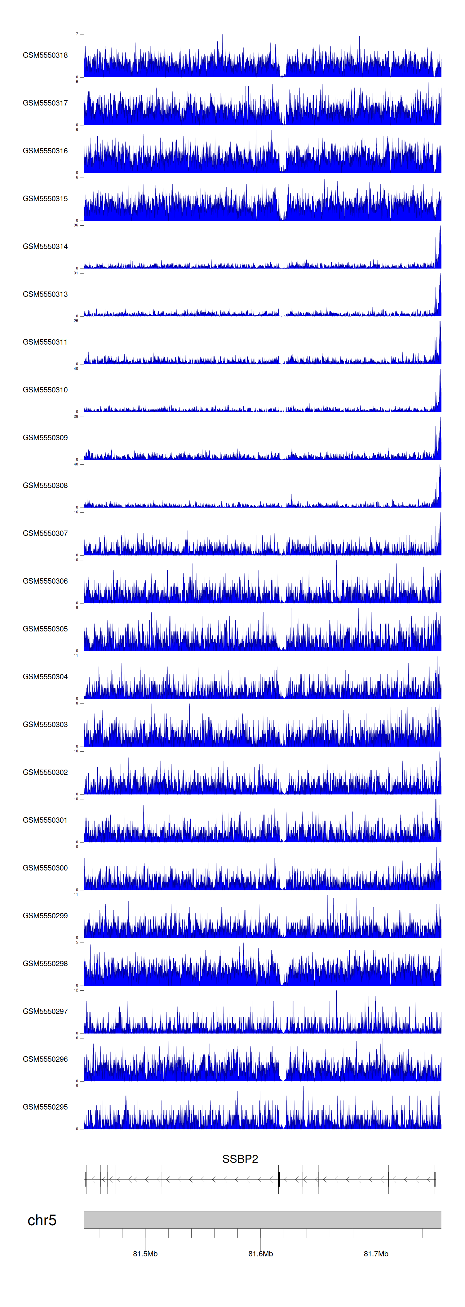 > Dataset: GSE143026 - SSBP2 peak across samples