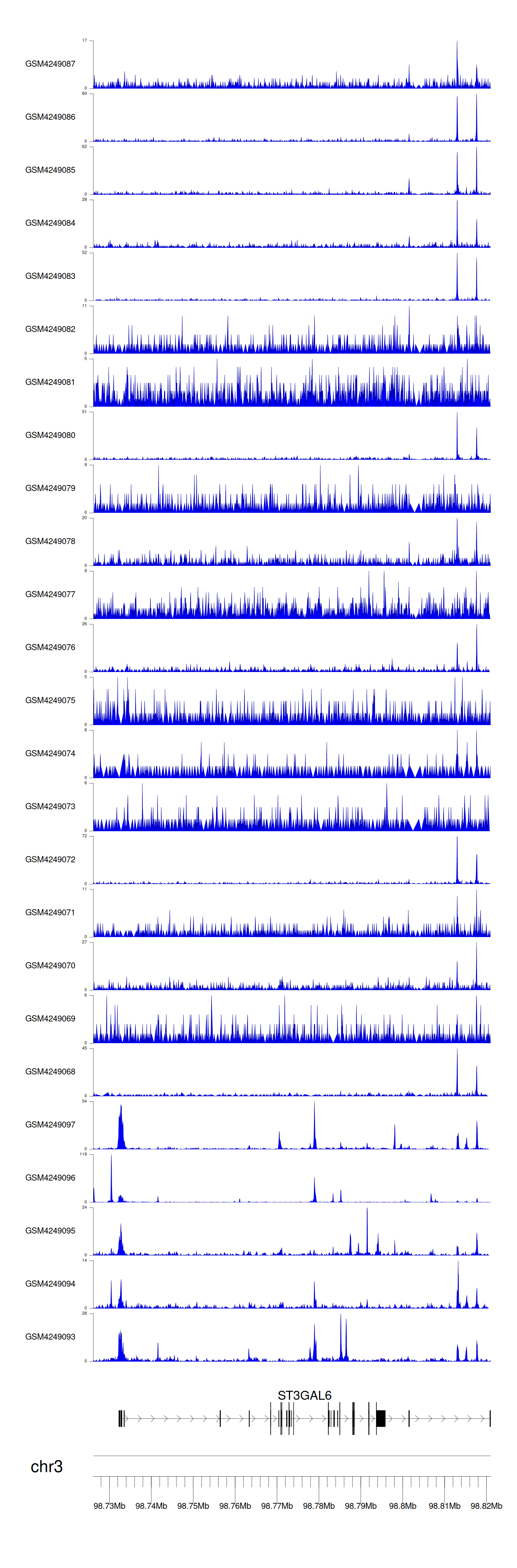 > Dataset: GSE143026 - ST3GAL6 peak across samples