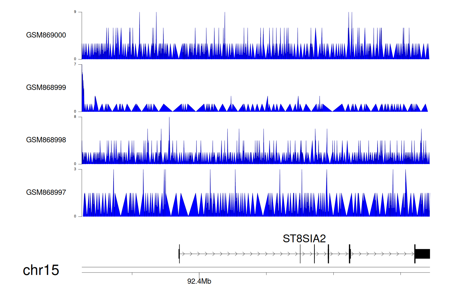 > Dataset: GSE68402 - ST8SIA2 peak across samples