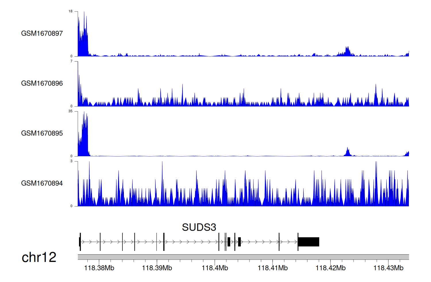 > Dataset: GSE100400 - SUDS3 peak across samples