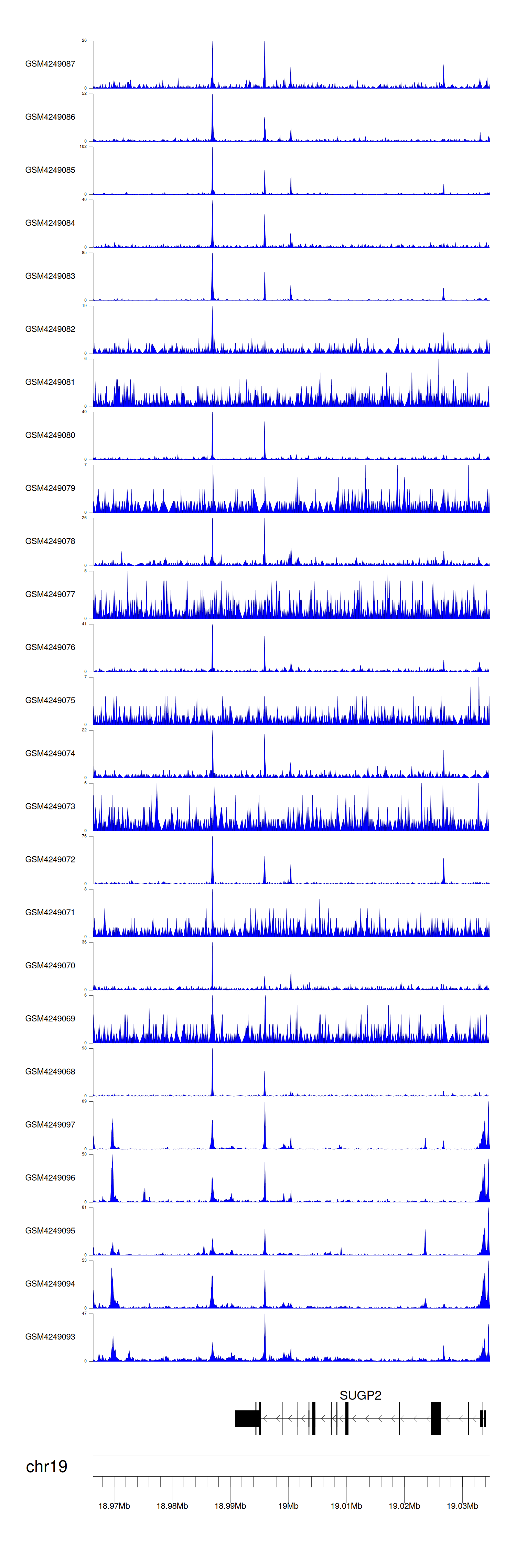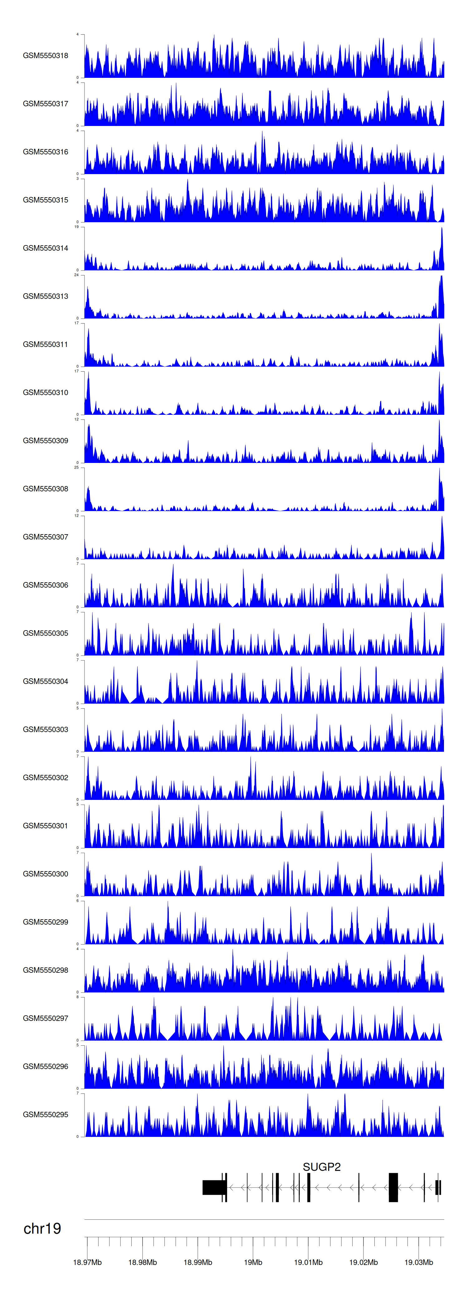 > Dataset: GSE143026 - SUGP2 peak across samples