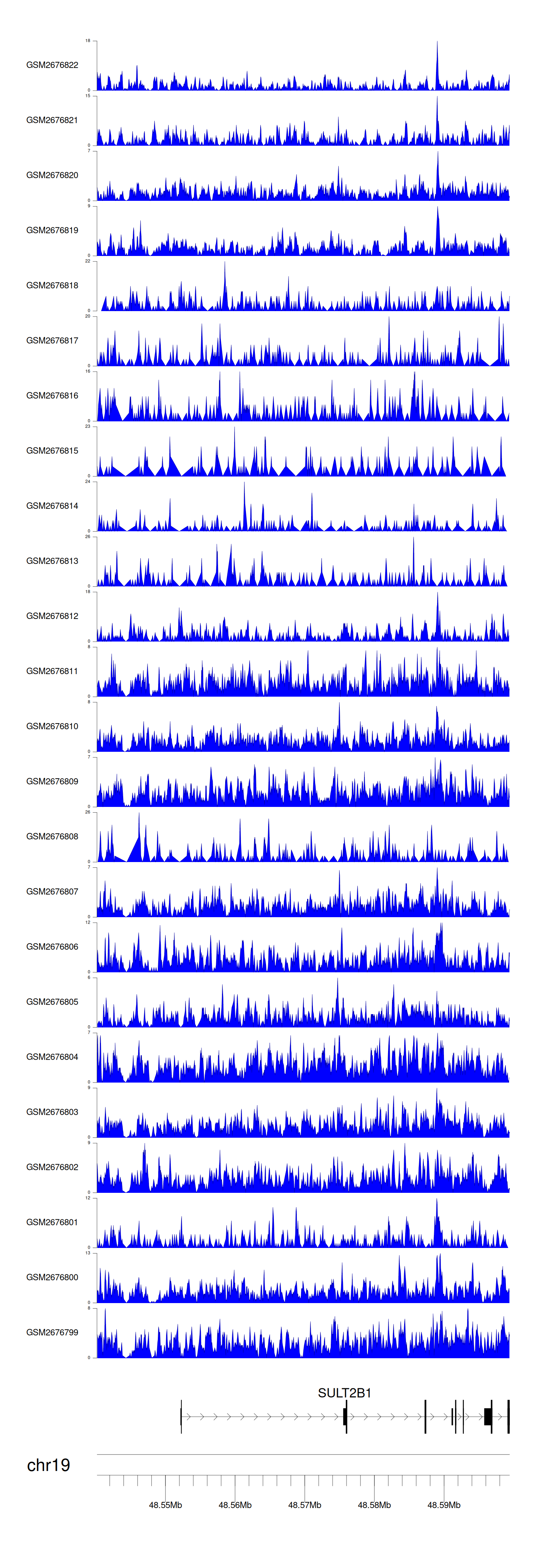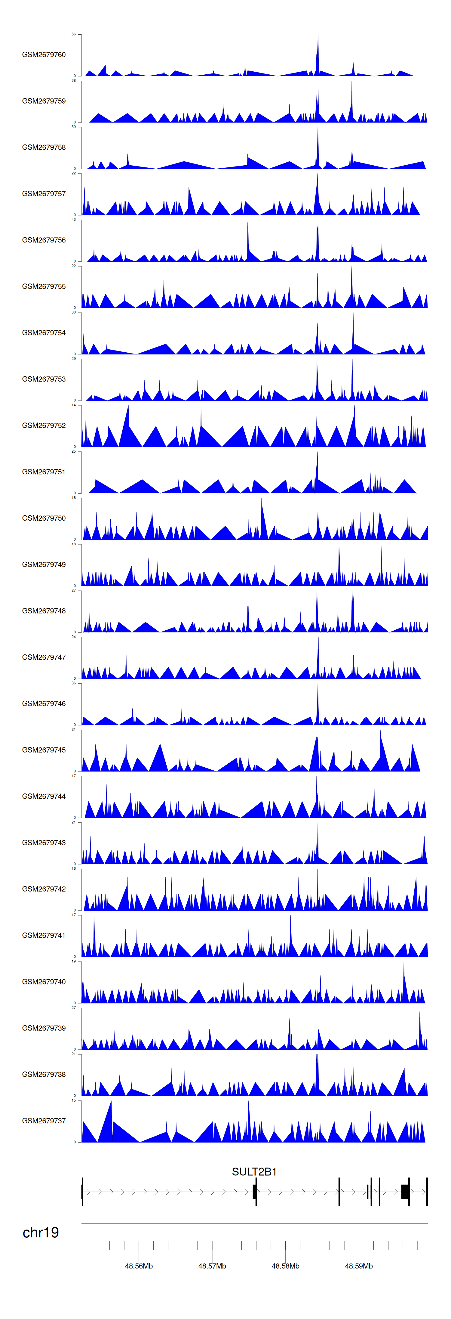 > Dataset: GSE100376 - SULT2B1 peak across samples