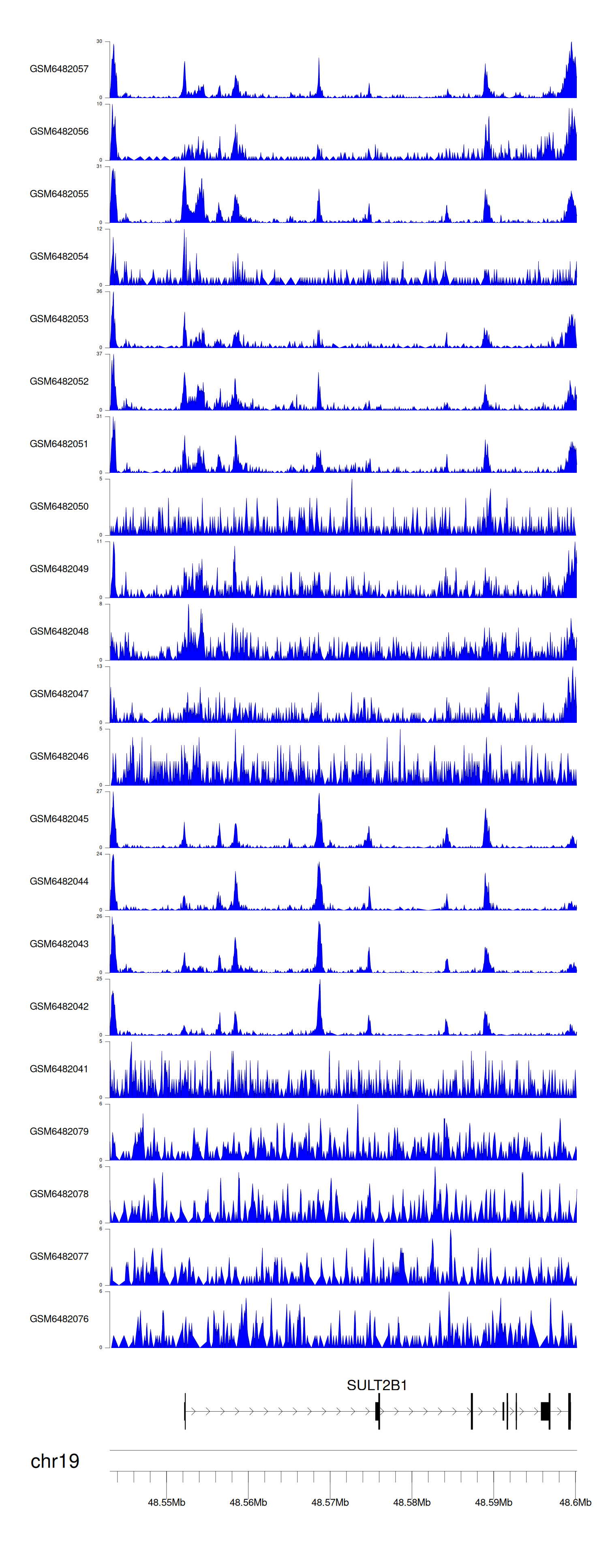 > Dataset: GSE165703 - SULT2B1 peak across samples