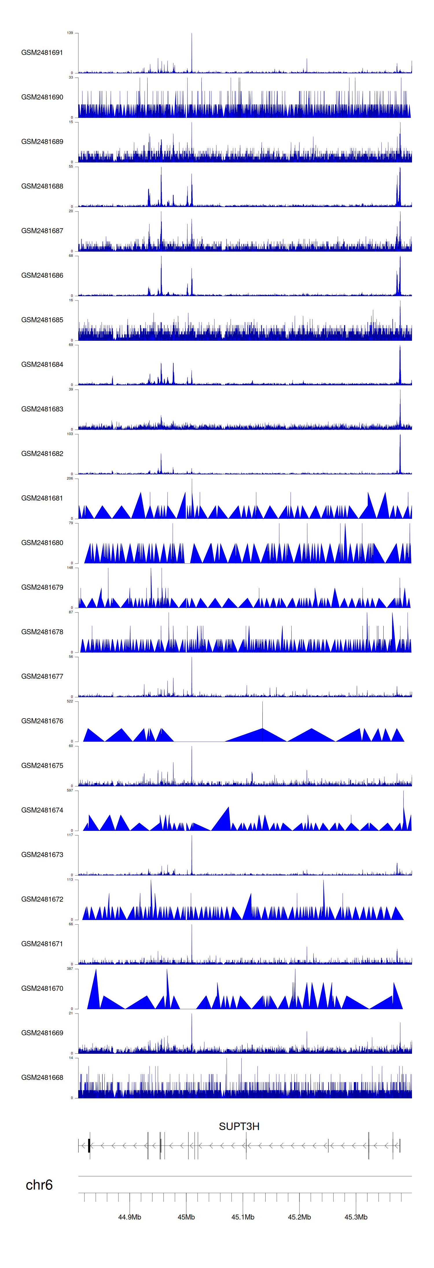 > Dataset: GSE94732 - SUPT3H peak across samples