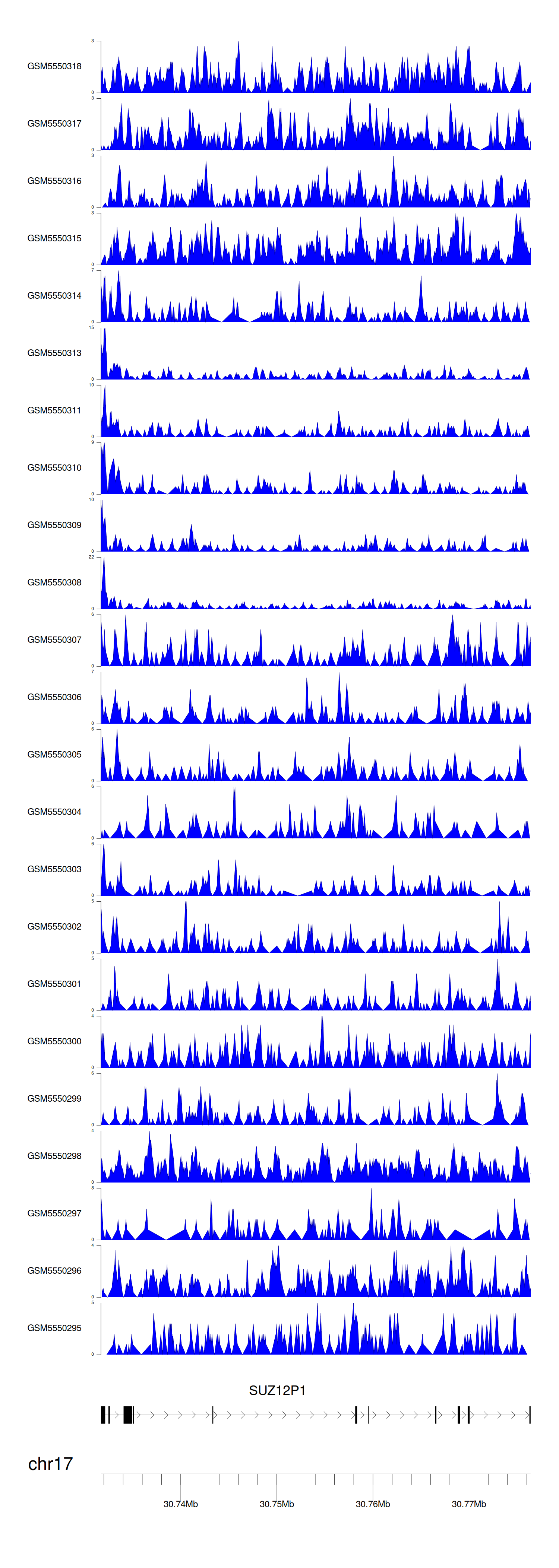 > Dataset: GSE143026 - SUZ12P1 peak across samples