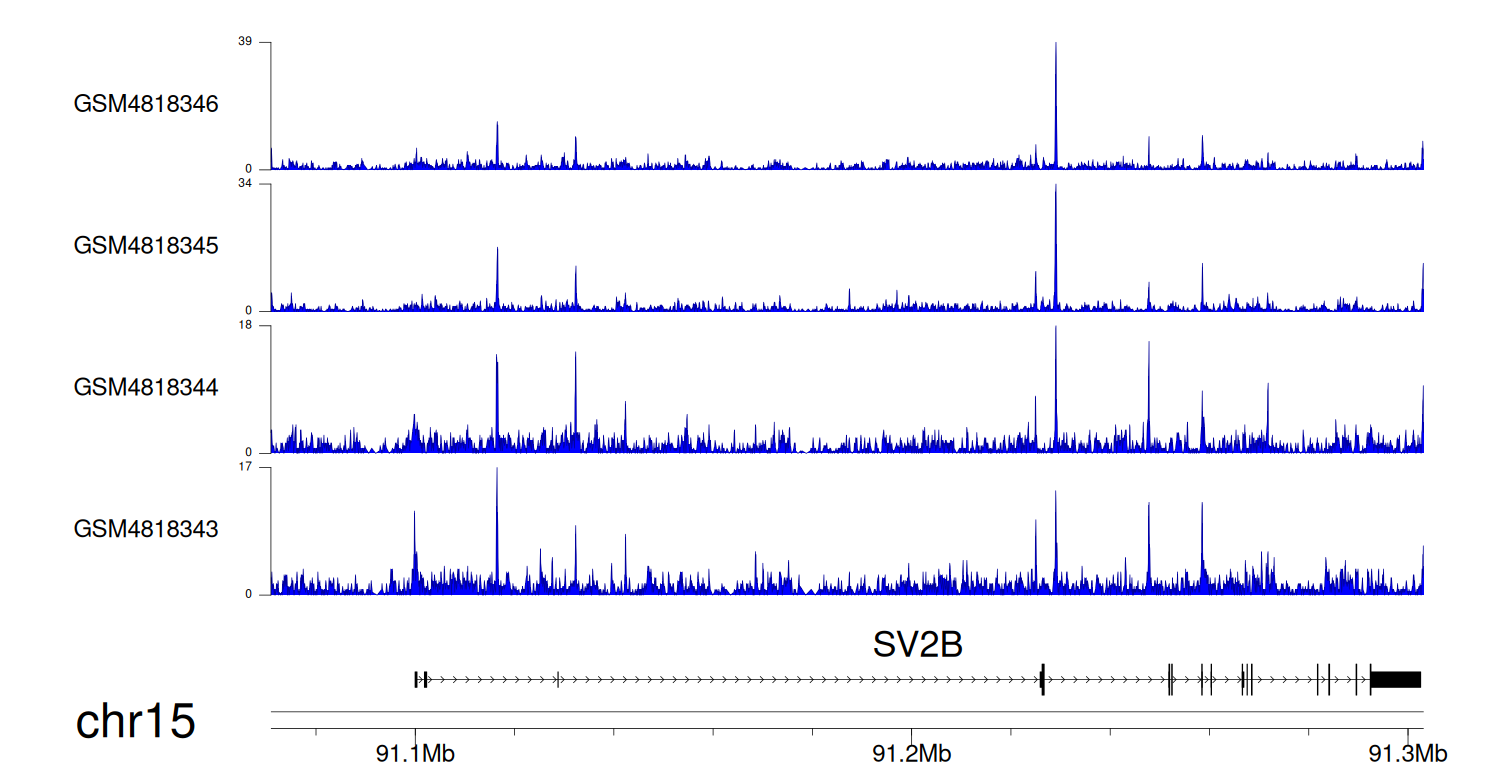 > Dataset: GSE131257 - SV2B peak across samples