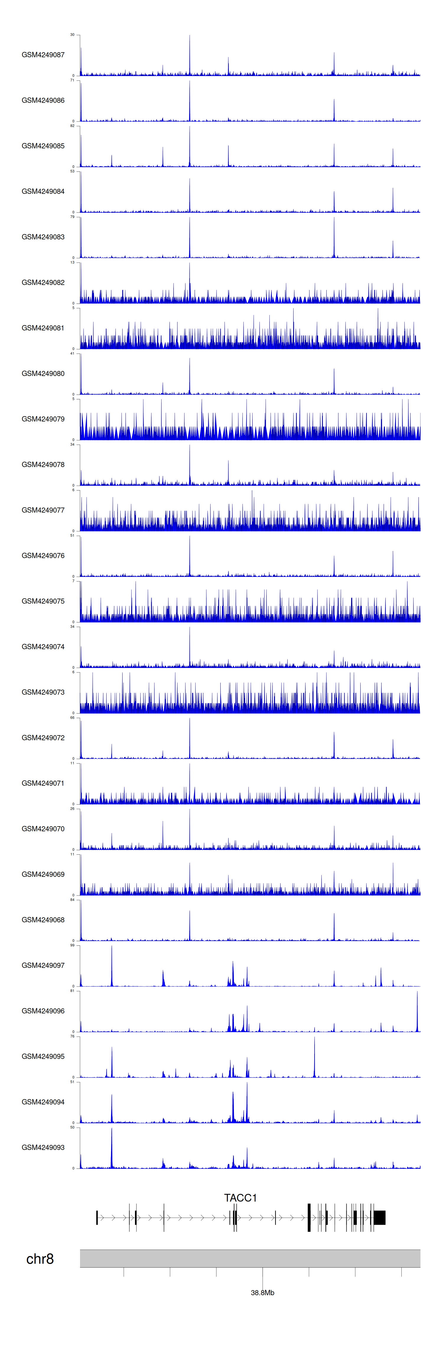 > Dataset: GSE143026 - TACC1 peak across samples