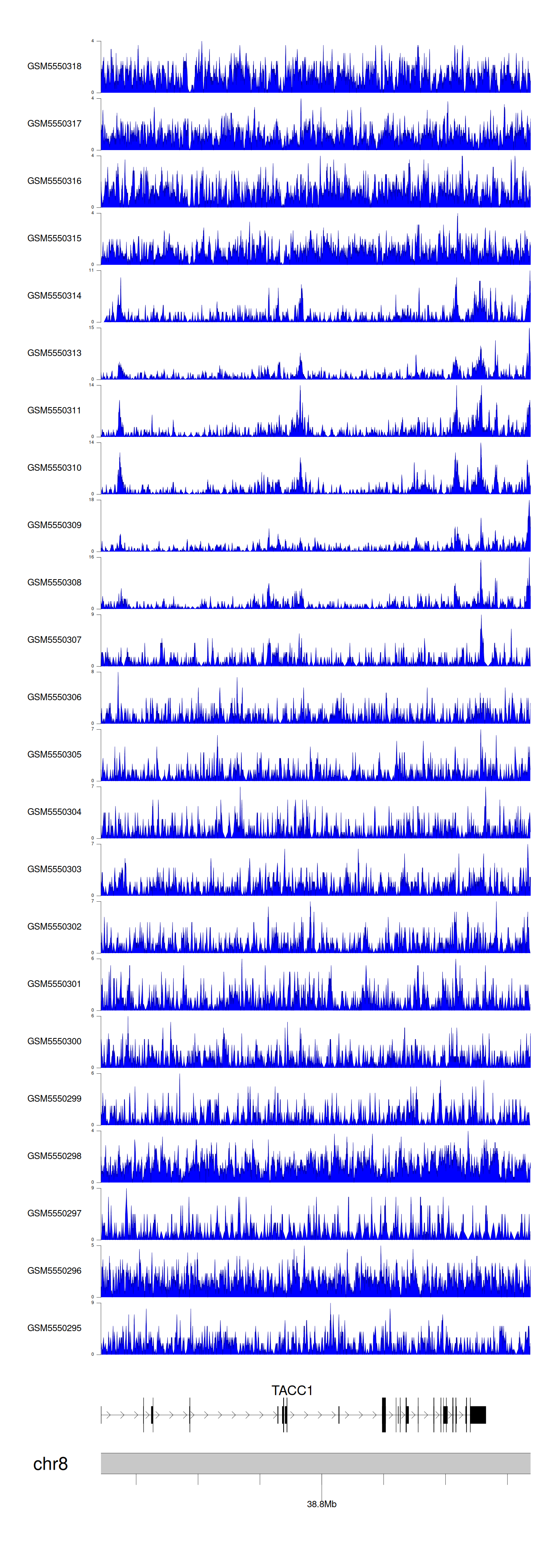 > Dataset: GSE183048 - TACC1 peak across samples
