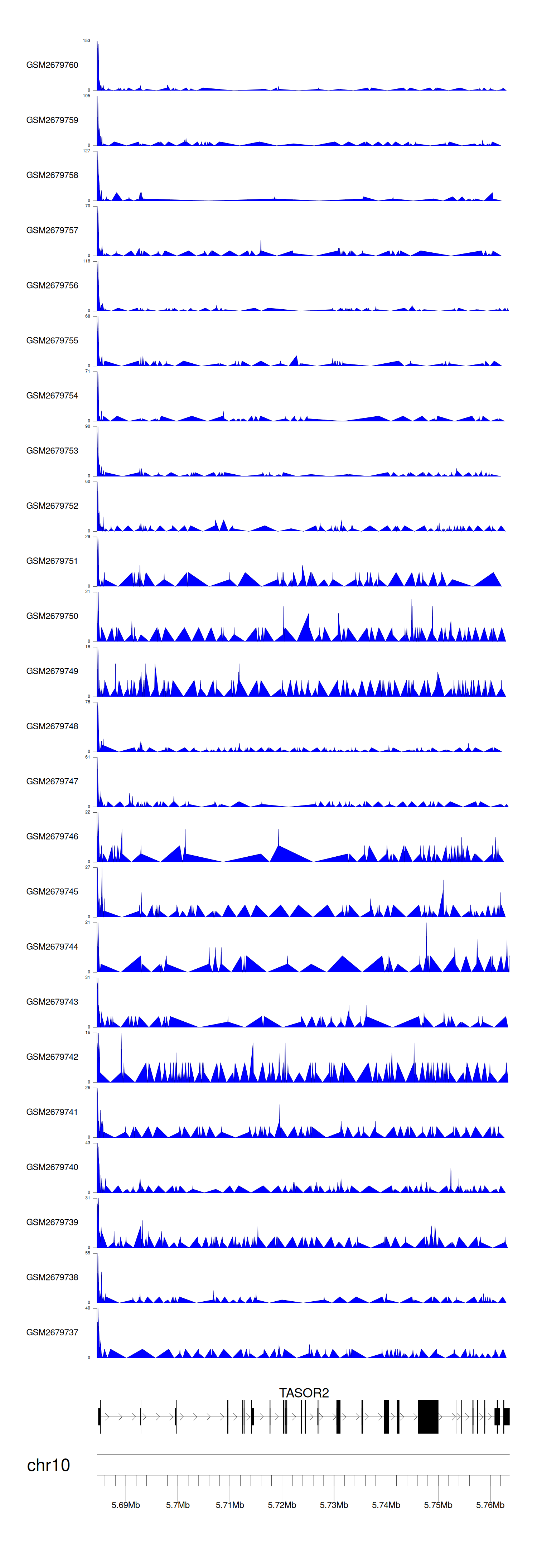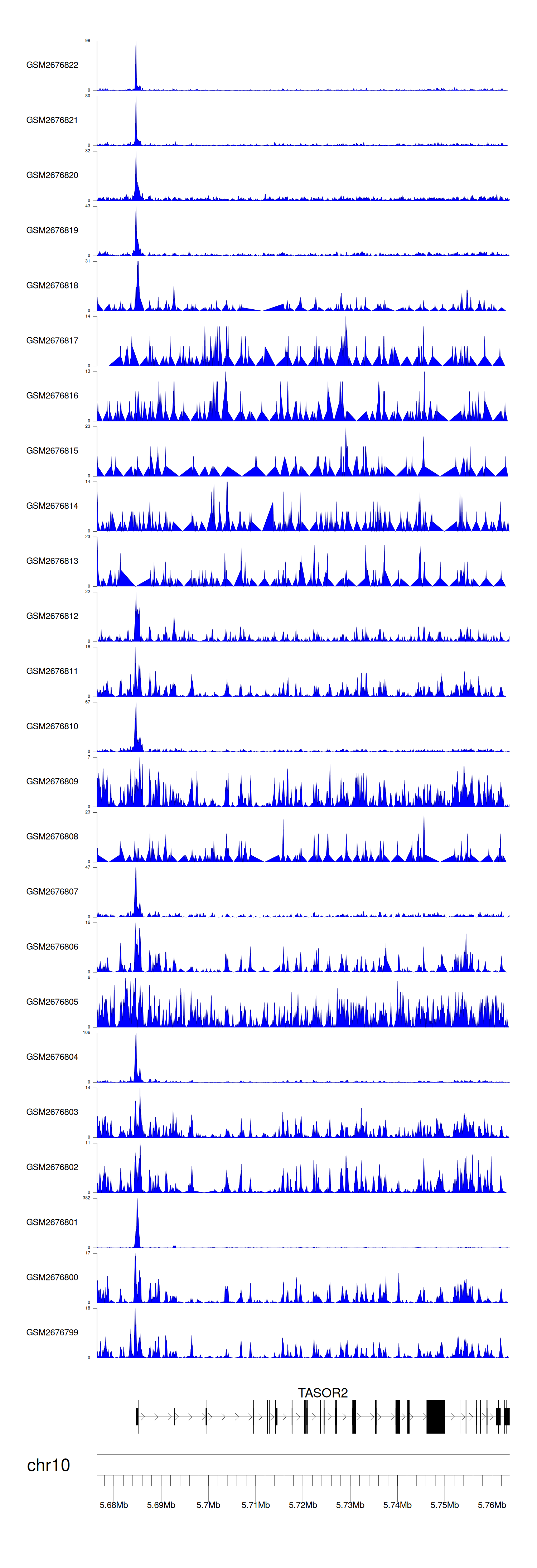 > Dataset: GSE100376 - TASOR2 peak across samples