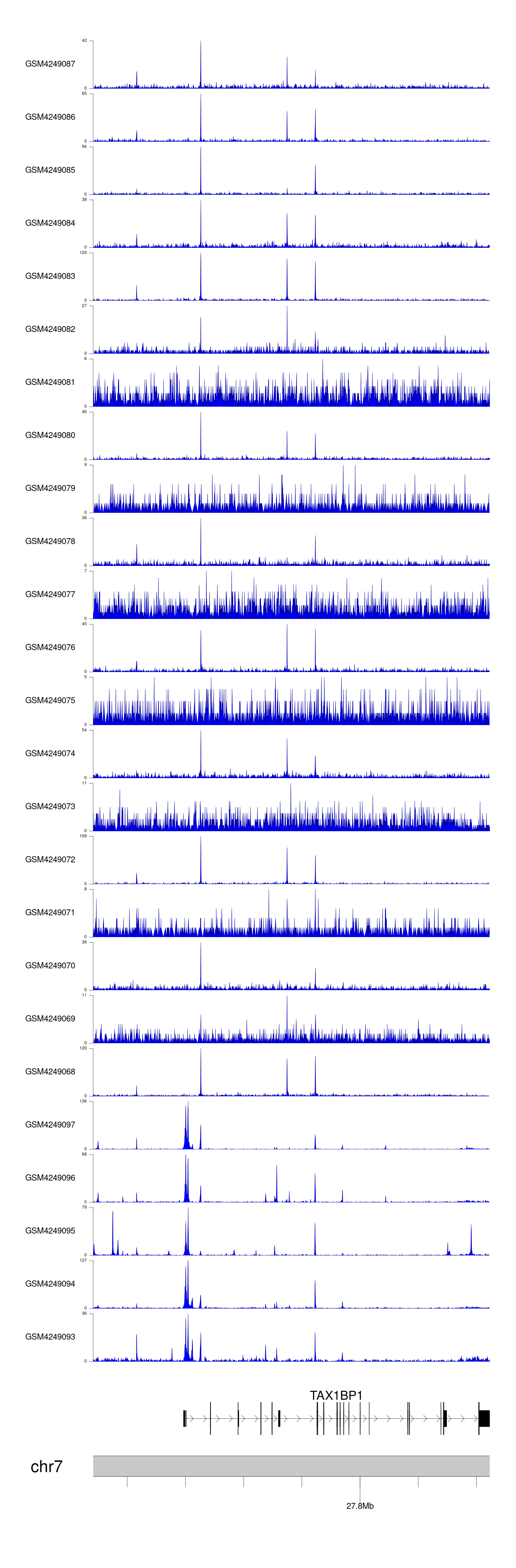 > Dataset: GSE143026 - TAX1BP1 peak across samples