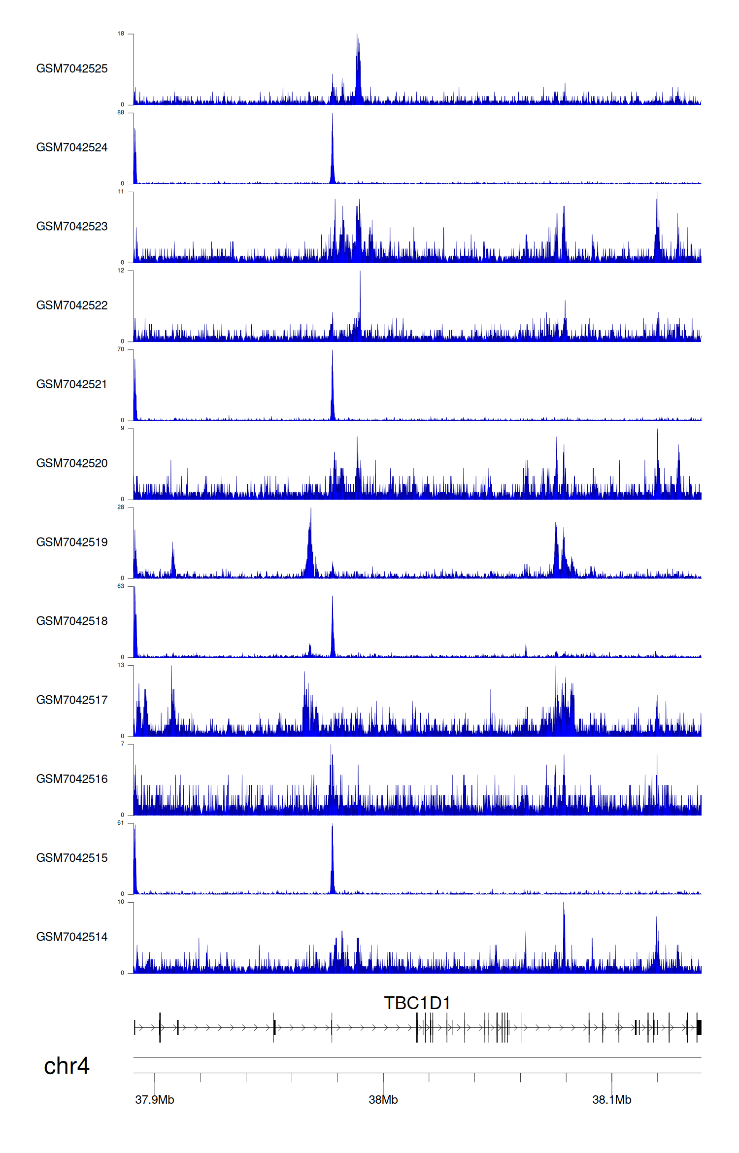 > Dataset: GSE225248 - TBC1D1 peak across samples