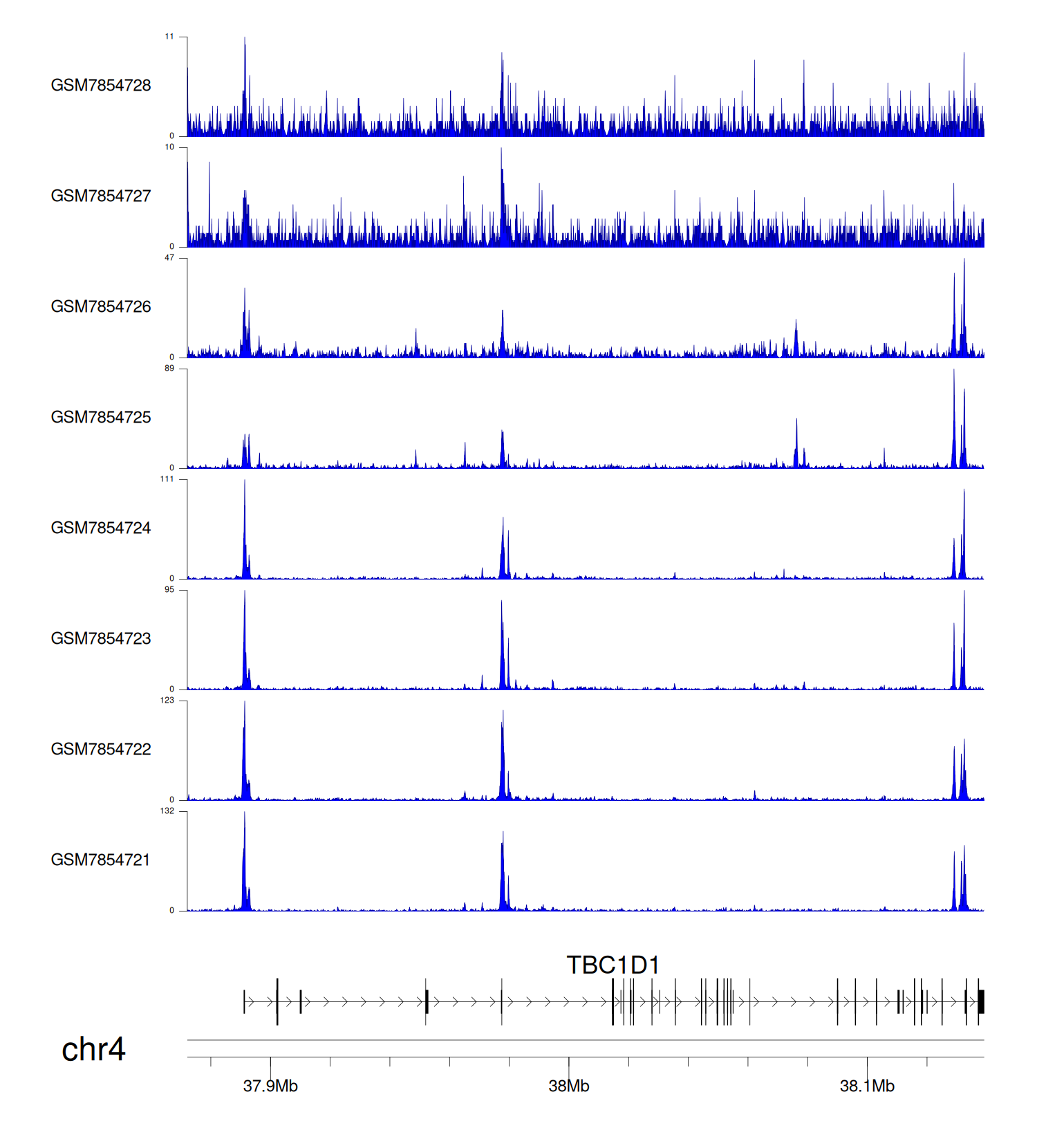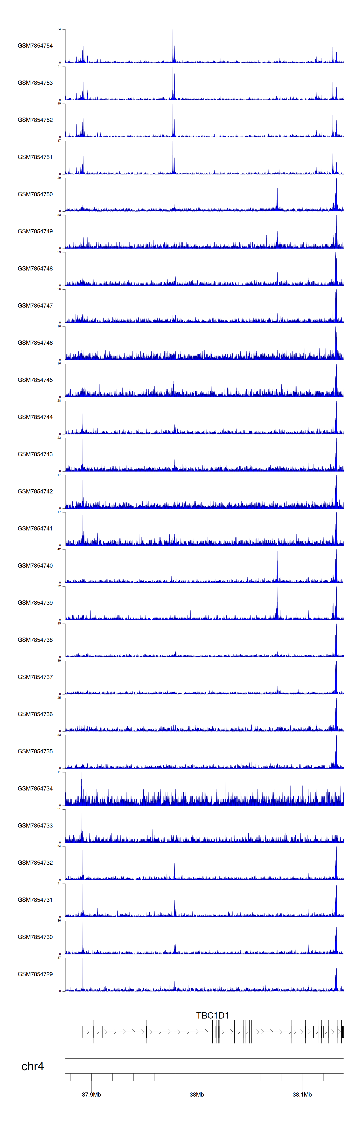 > Dataset: GSE198334 - TBC1D1 peak across samples