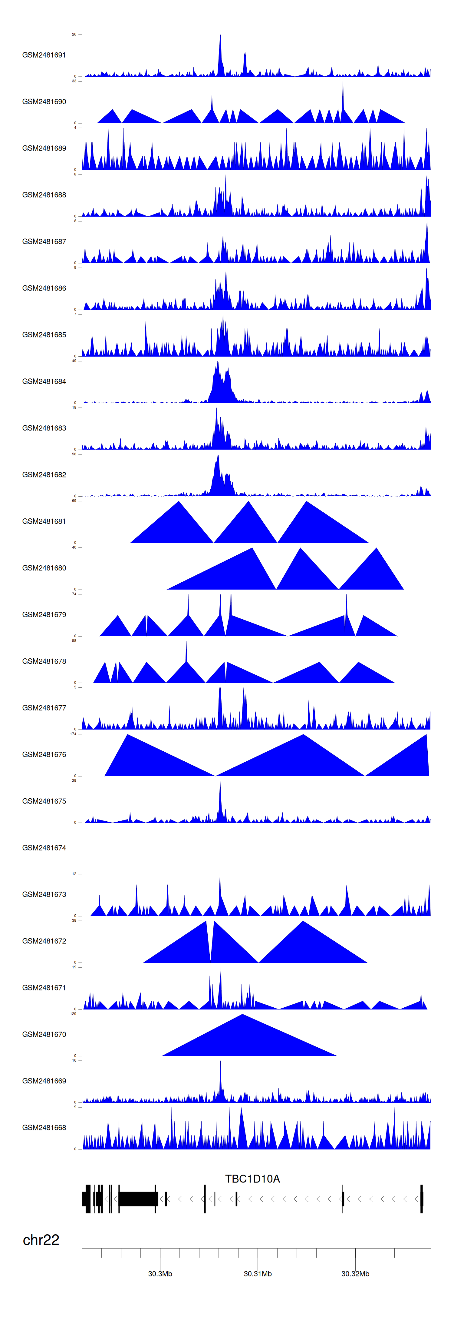 > Dataset: GSE94732 - TBC1D10A peak across samples