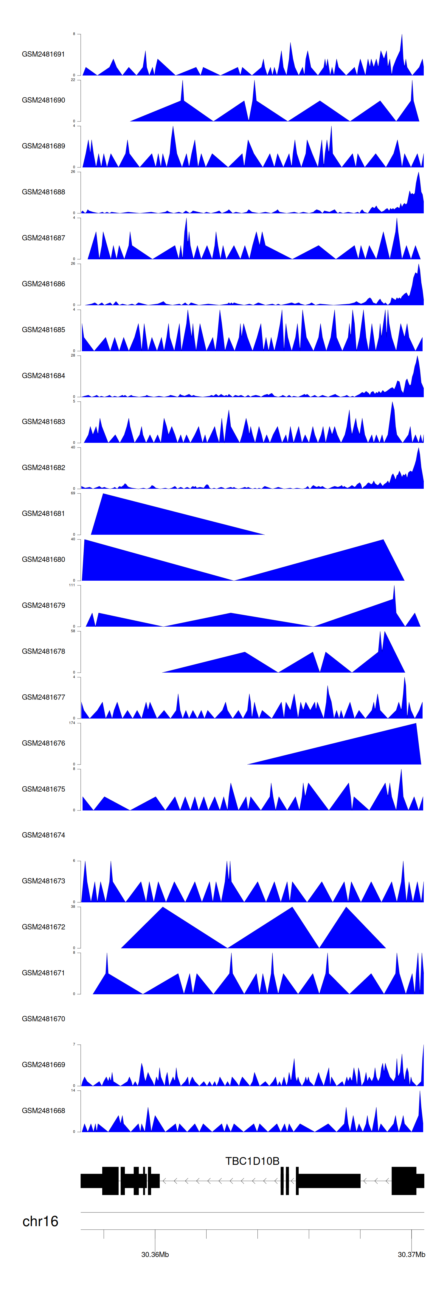 > Dataset: GSE94732 - TBC1D10B peak across samples