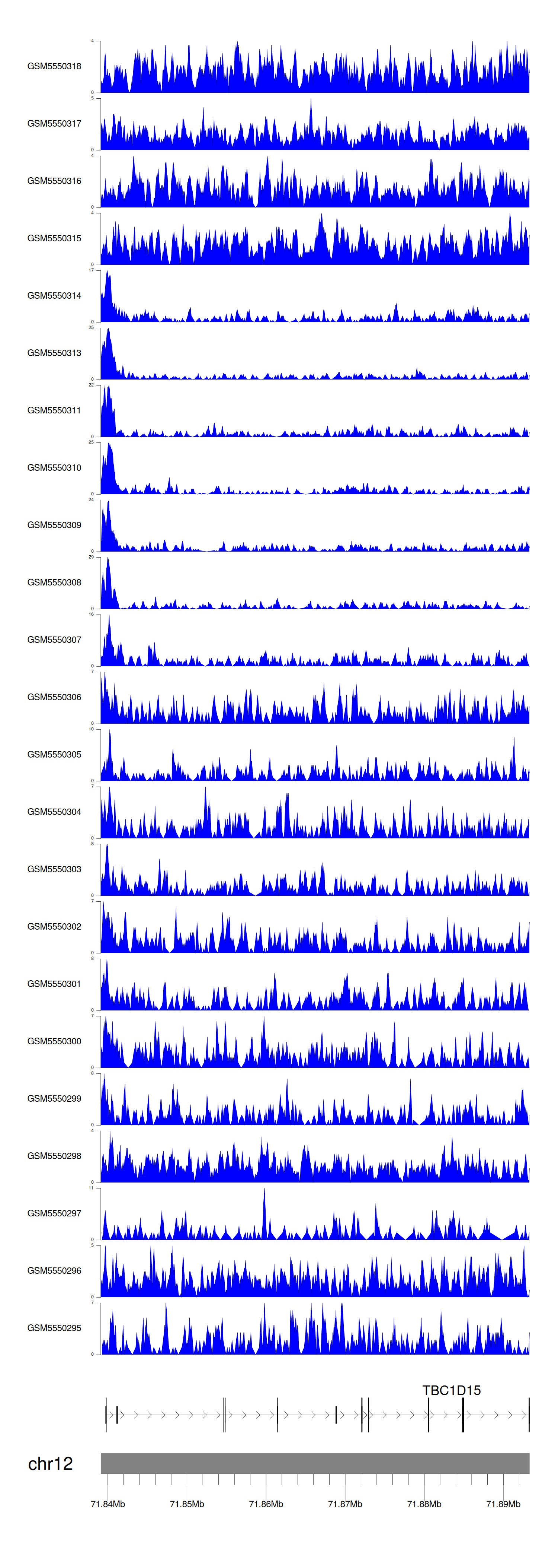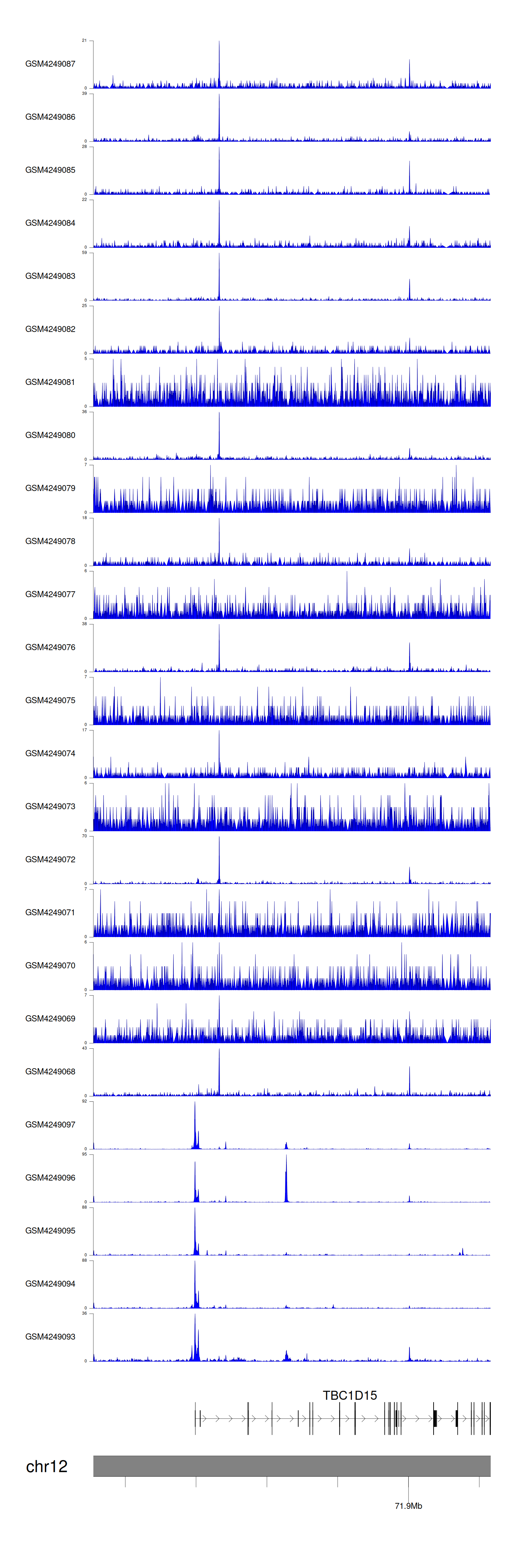 > Dataset: GSE143026 - TBC1D15 peak across samples