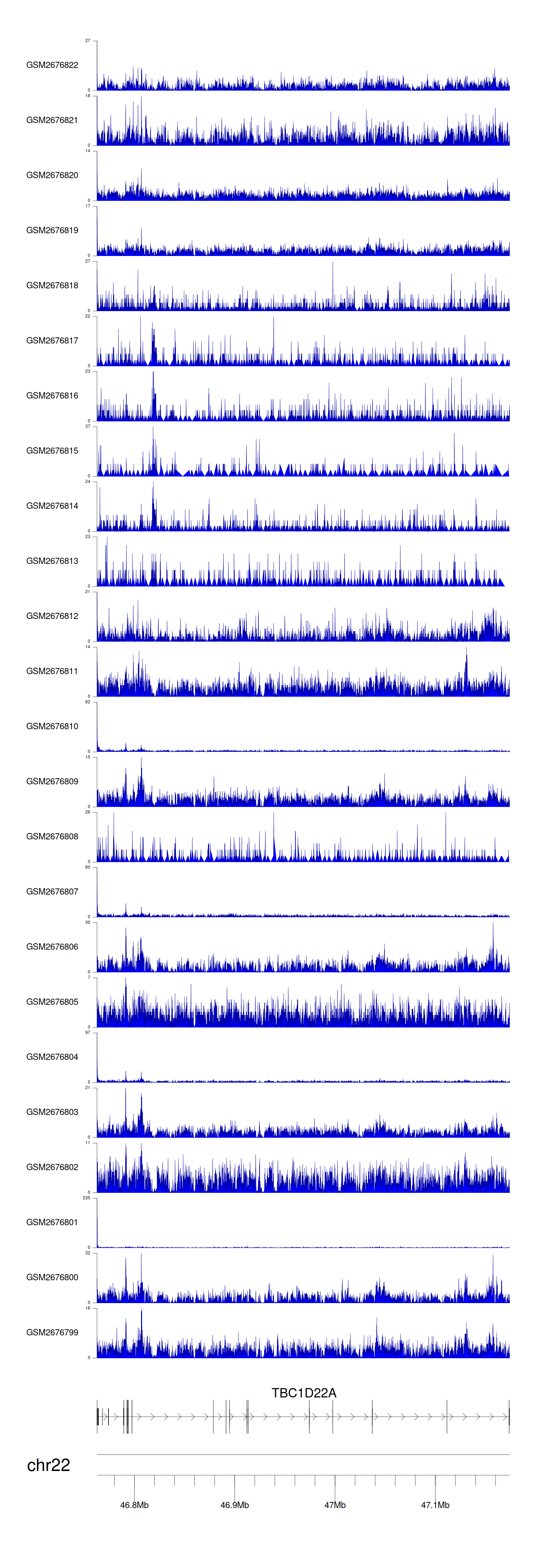 > Dataset: GSE100376 - TBC1D22A peak across samples