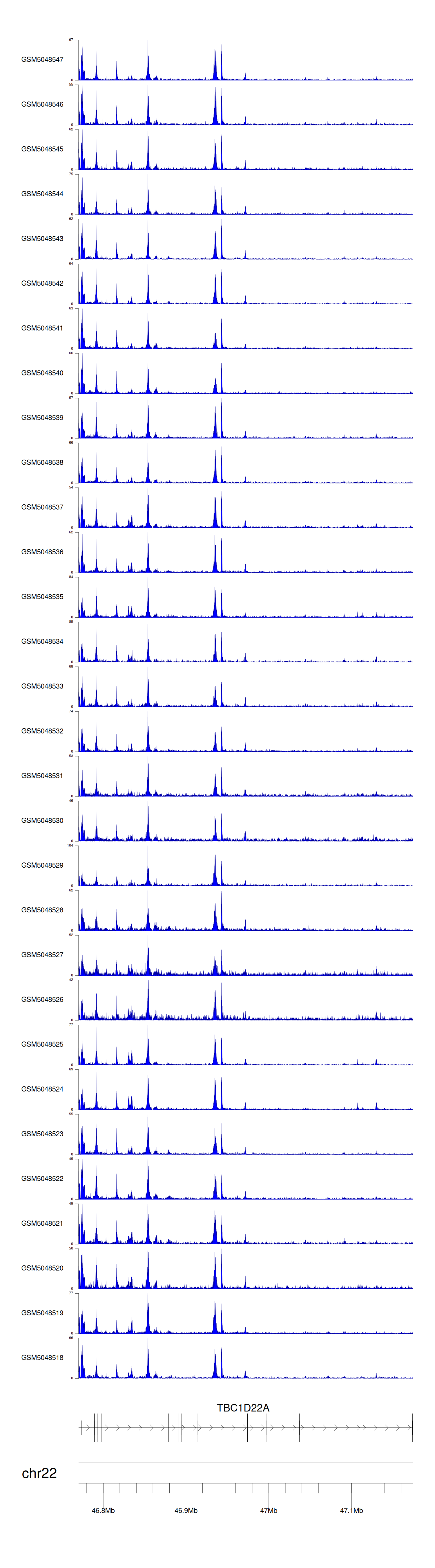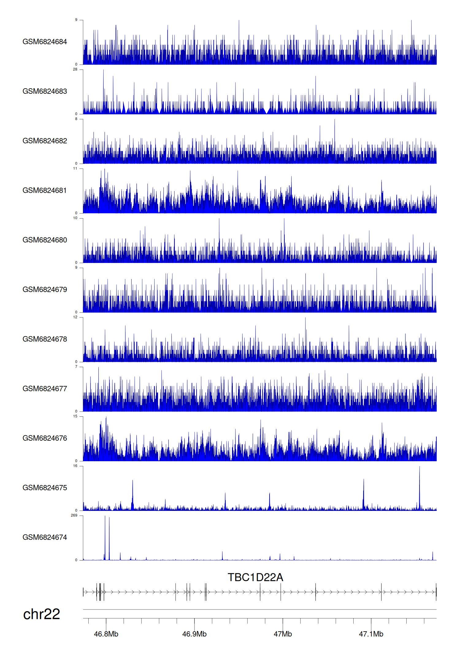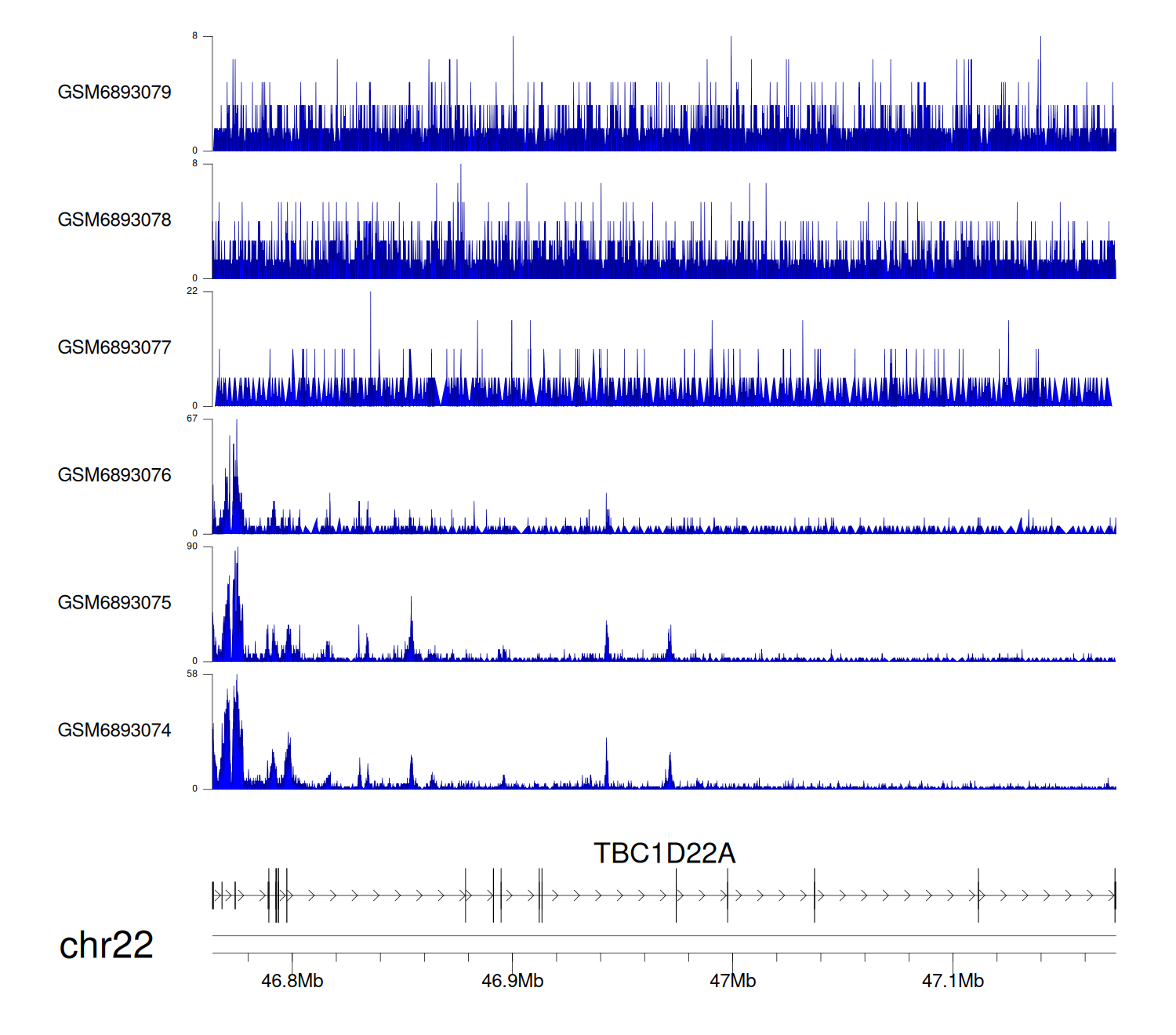 > Dataset: GSE211651 - TBC1D22A peak across samples