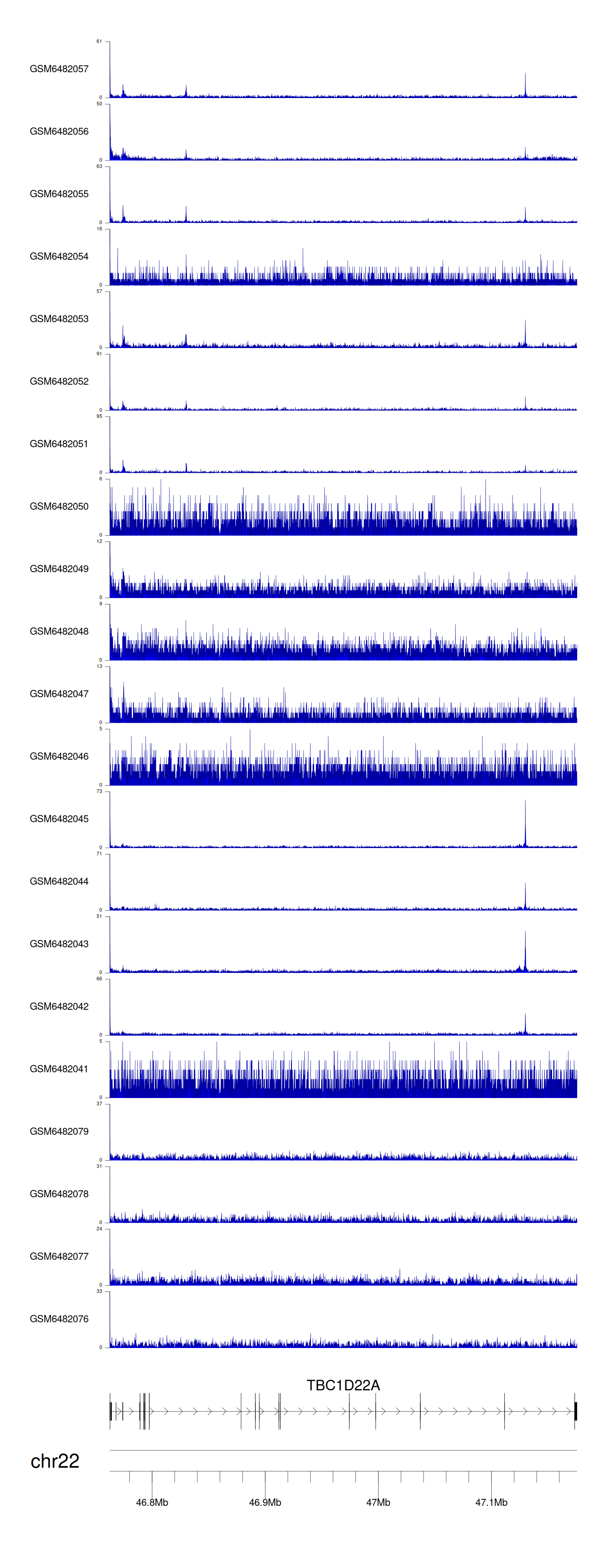 > Dataset: GSE165703 - TBC1D22A peak across samples