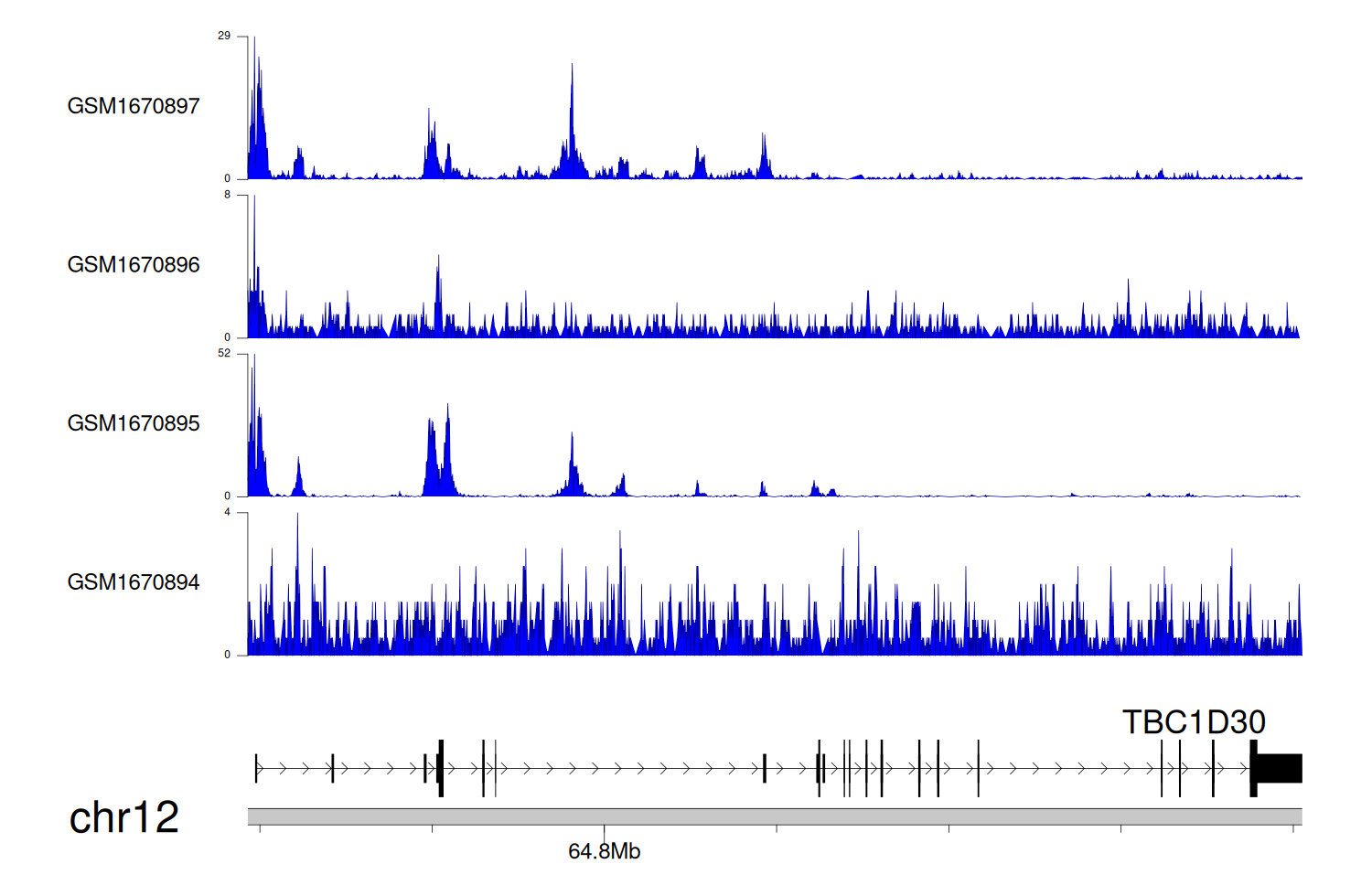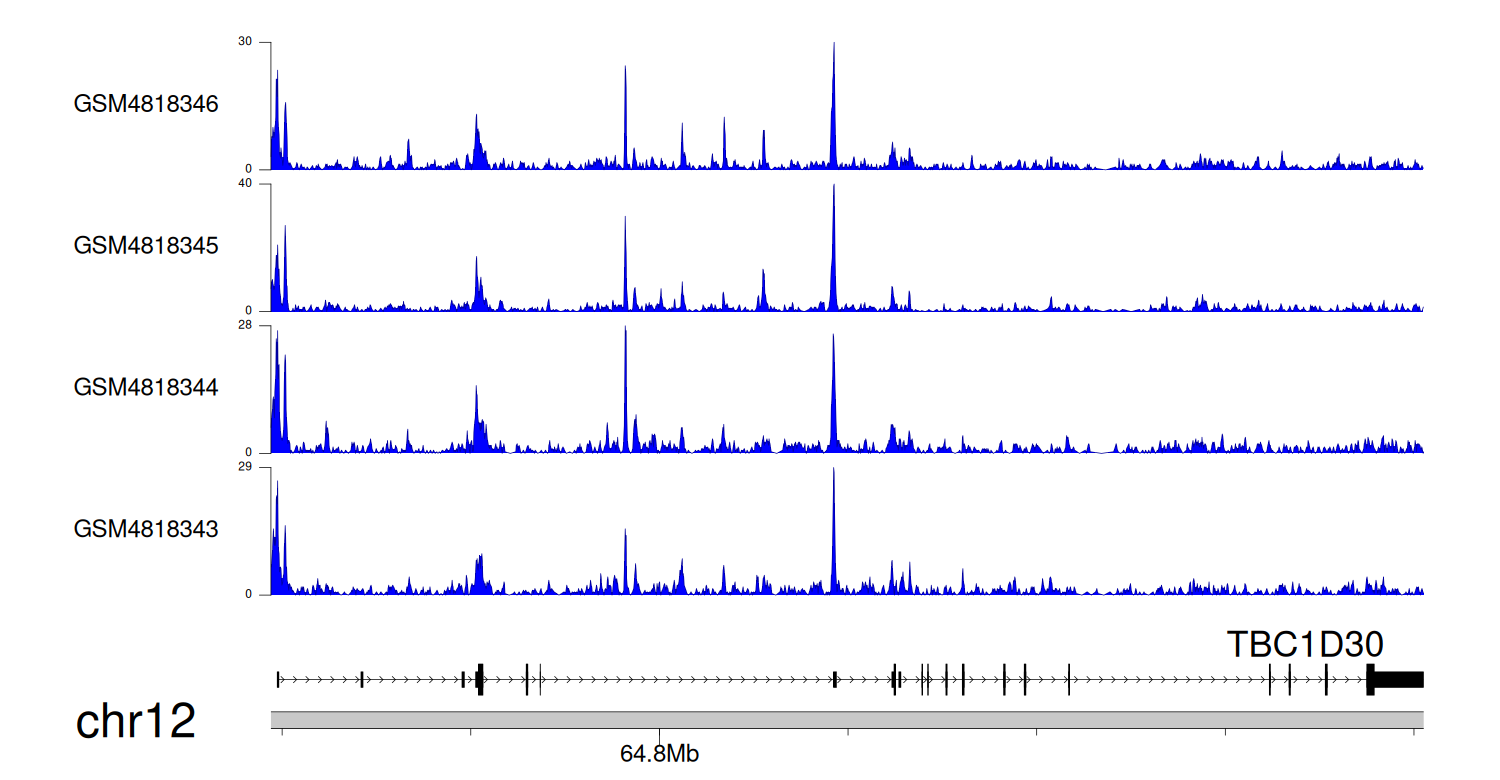 > Dataset: GSE68402 - TBC1D30 peak across samples