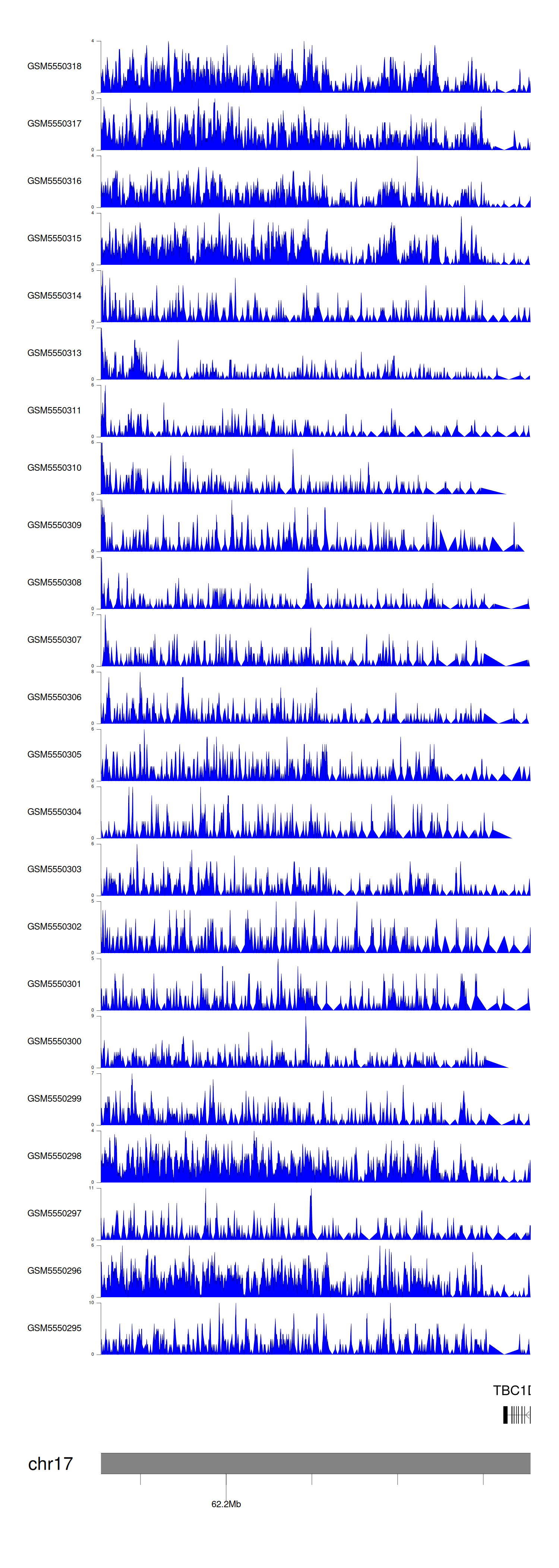 > Dataset: GSE143026 - TBC1D3P2 peak across samples