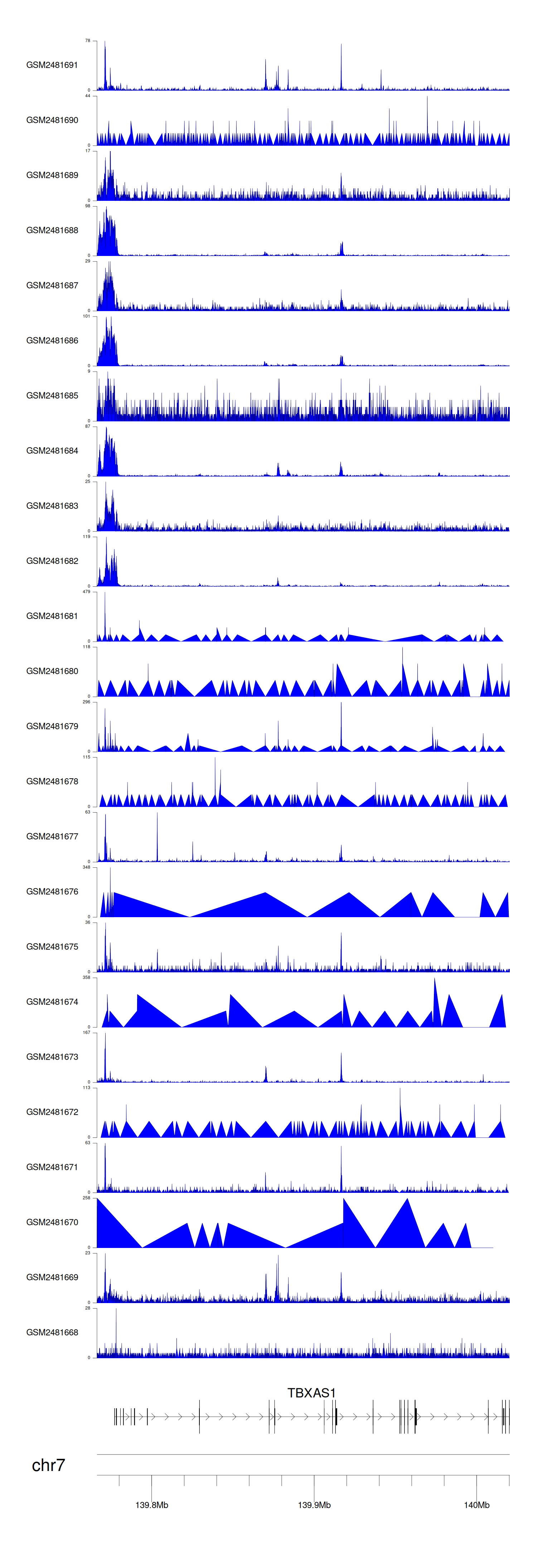 > Dataset: GSE94732 - TBXAS1 peak across samples