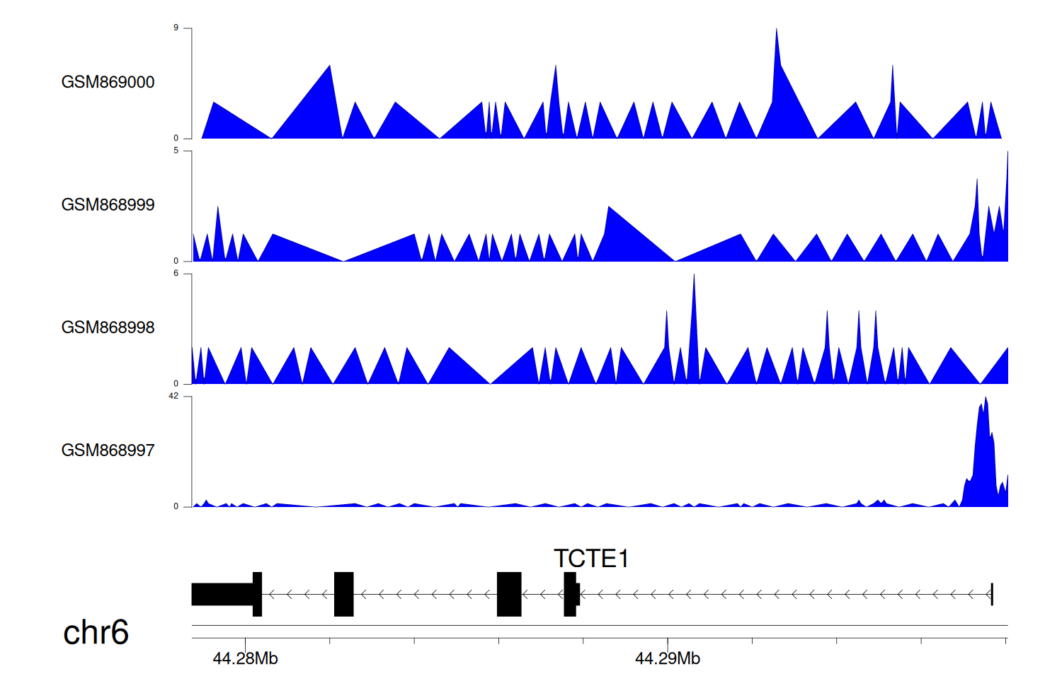 > Dataset: GSE35465 - TCTE1 peak across samples