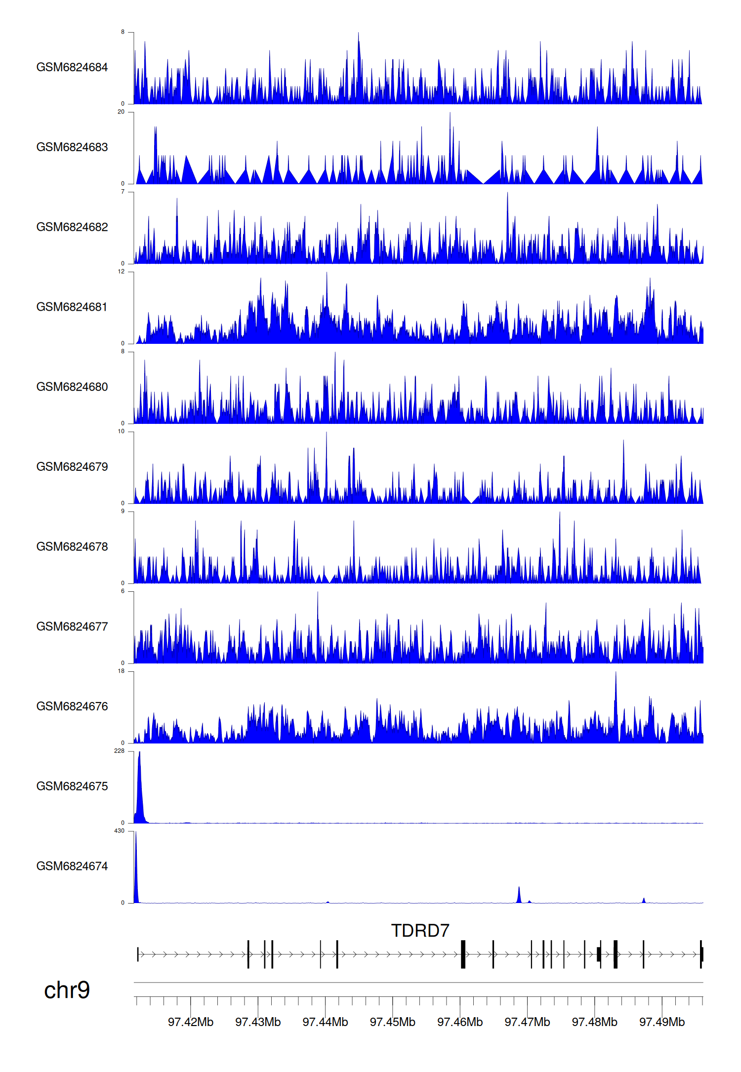 > Dataset: GSE144329 - TDRD7 peak across samples