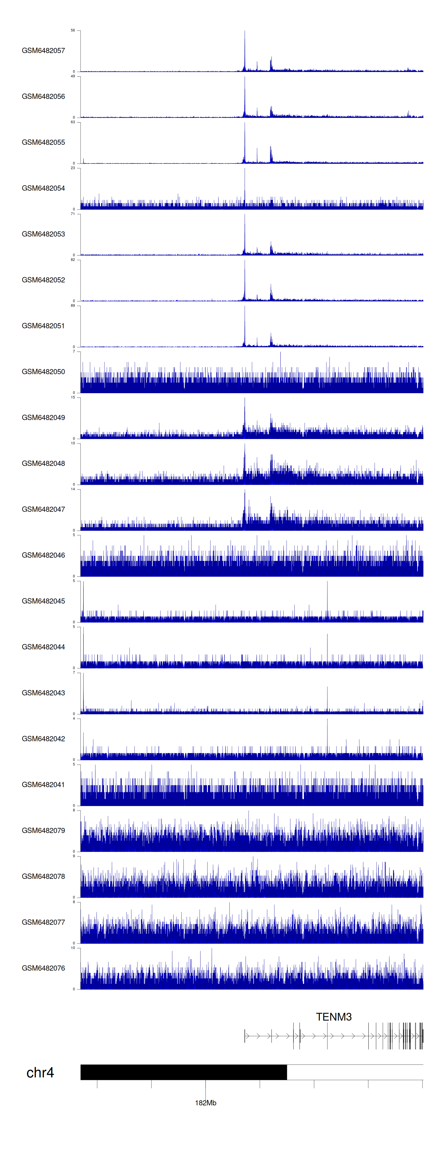 > Dataset: GSE165703 - TENM3 peak across samples