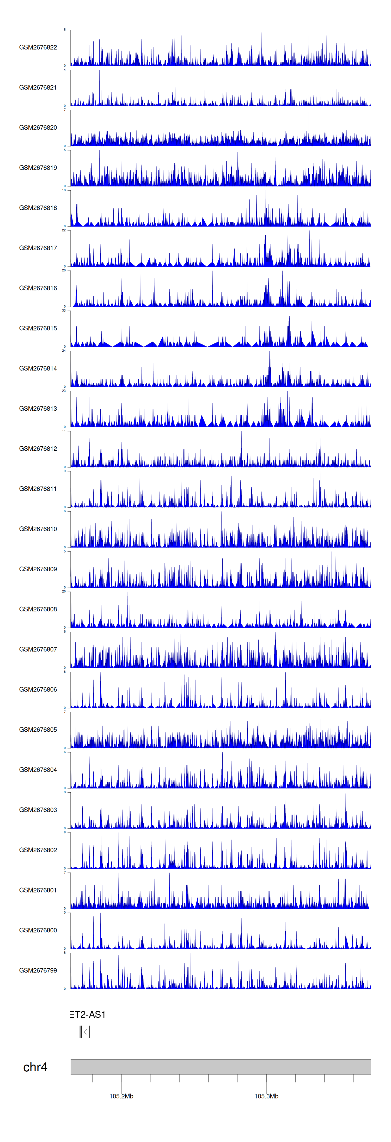 > Dataset: GSE100376 - TET2-AS1 peak across samples