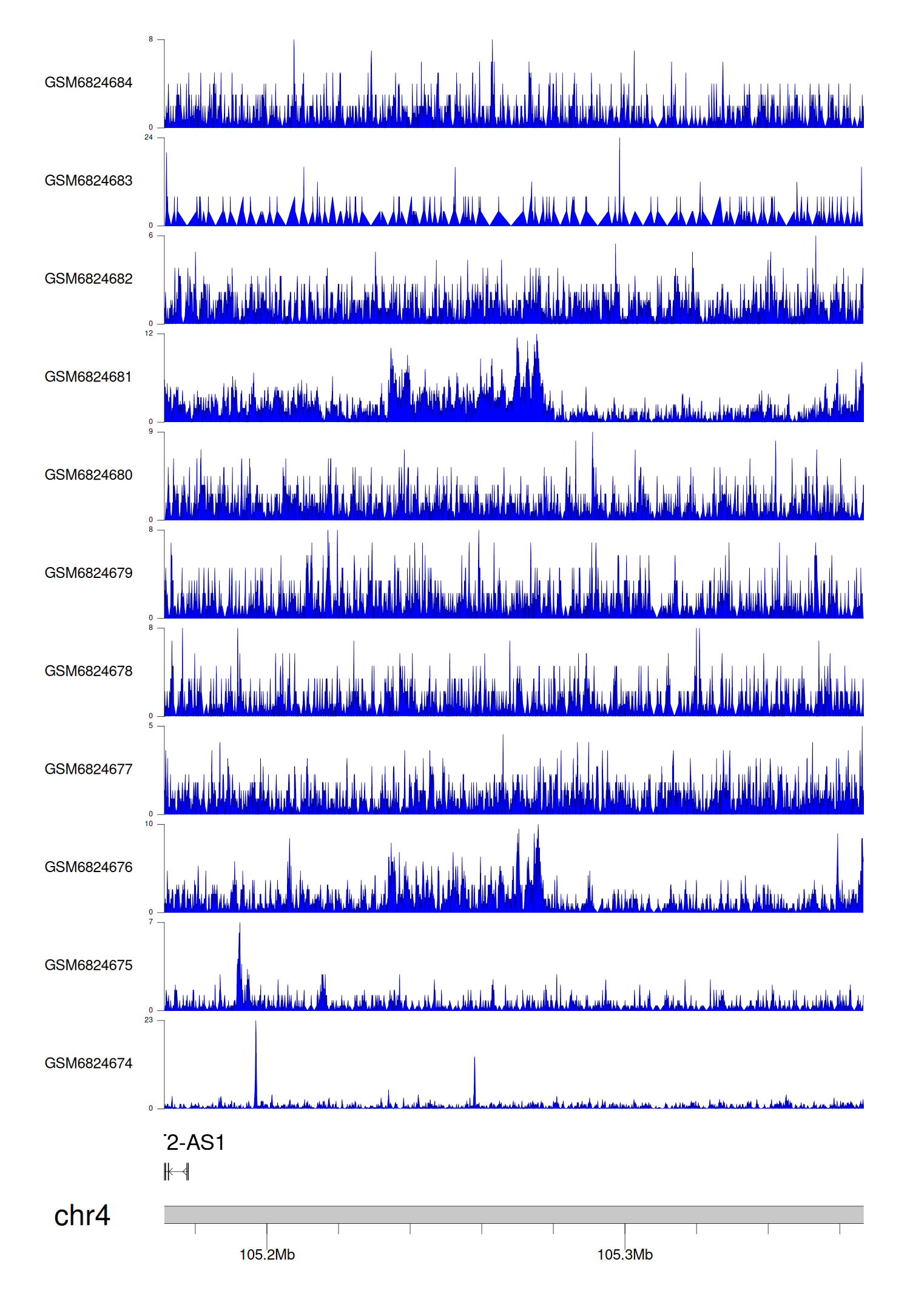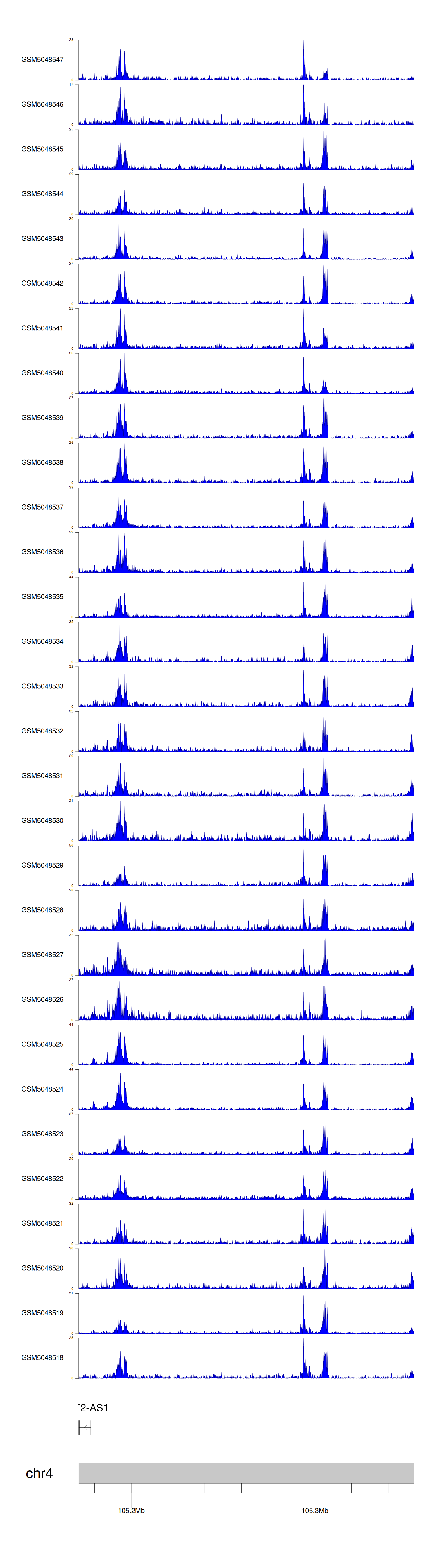 > Dataset: GSE30738 - TET2-AS1 peak across samples