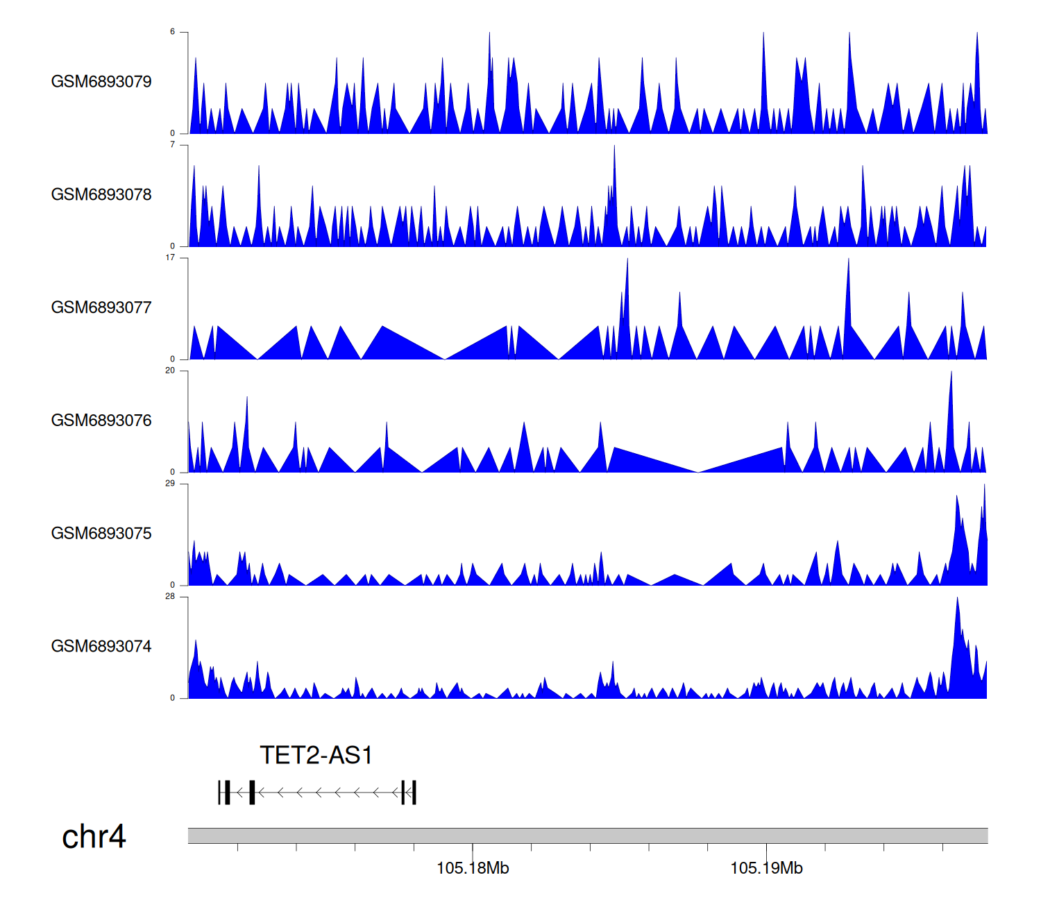 > Dataset: GSE165703 - TET2-AS1 peak across samples