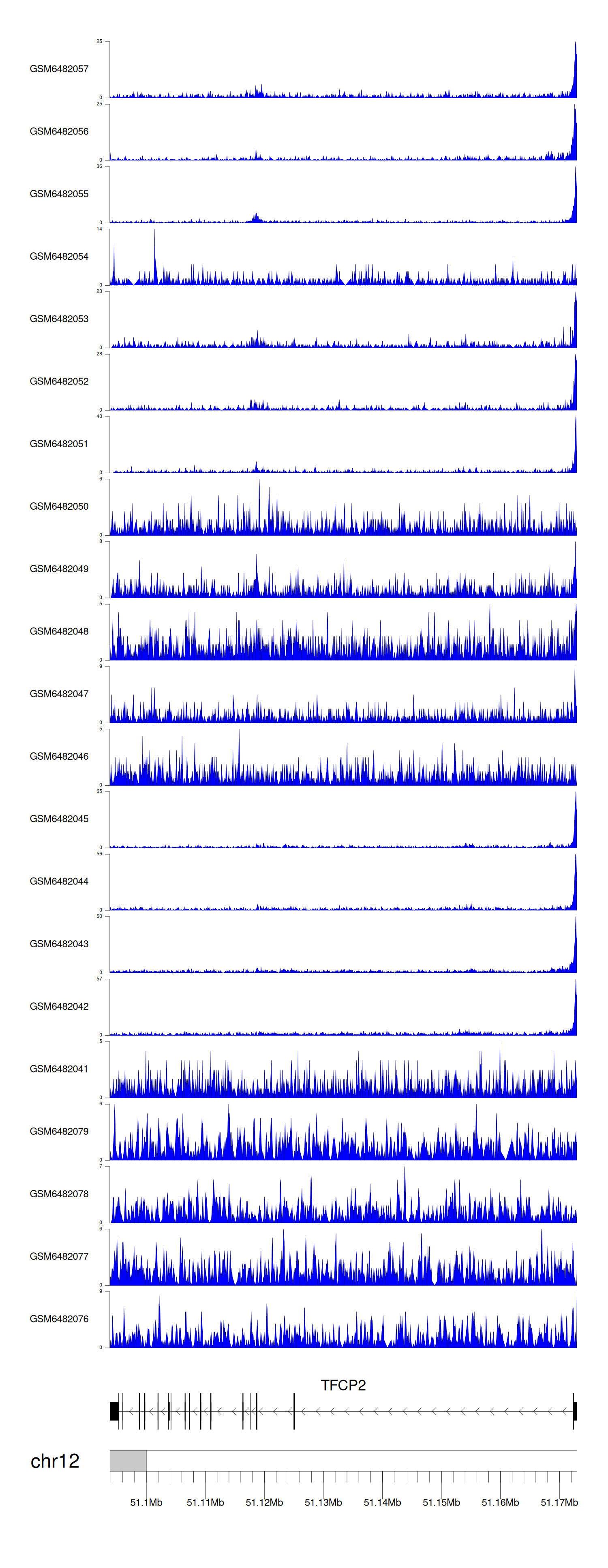 > Dataset: GSE165703 - TFCP2 peak across samples
