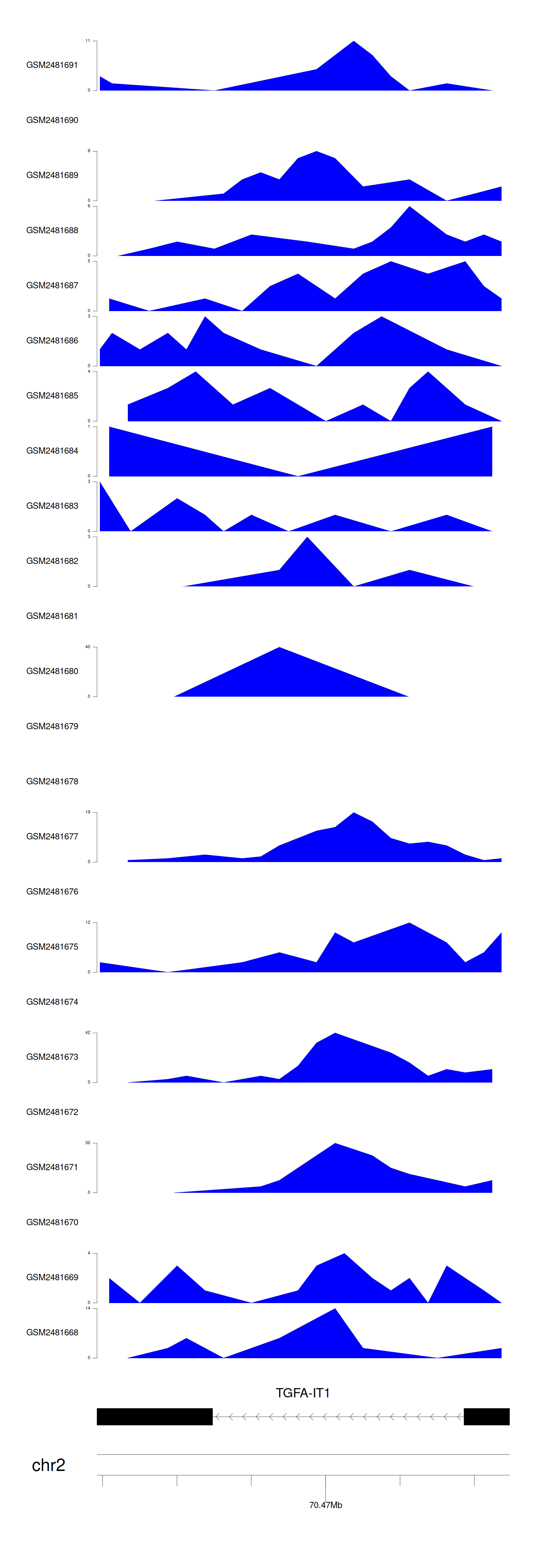 Target gene [TGFA-IT1] related to VISs