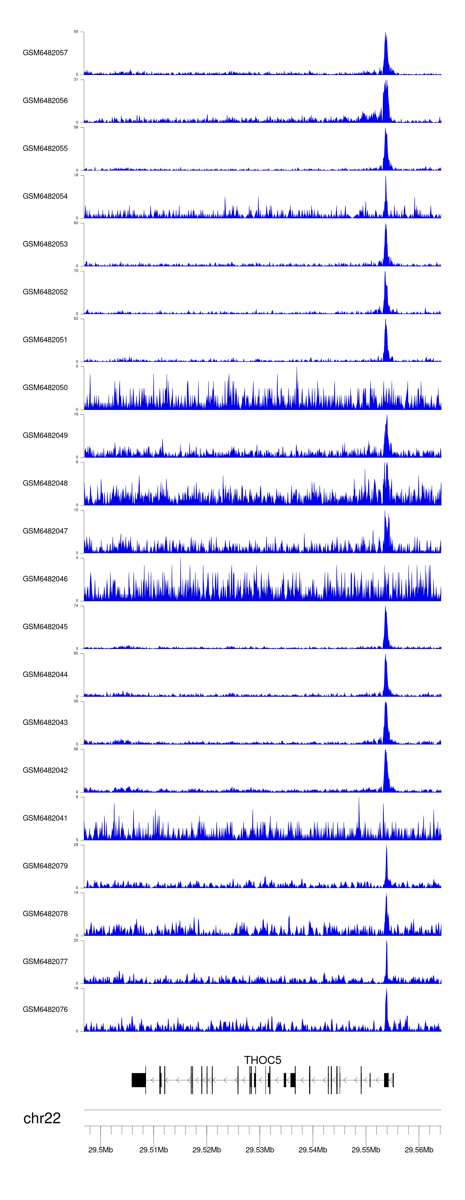> Dataset: GSE165703 - THOC5 peak across samples