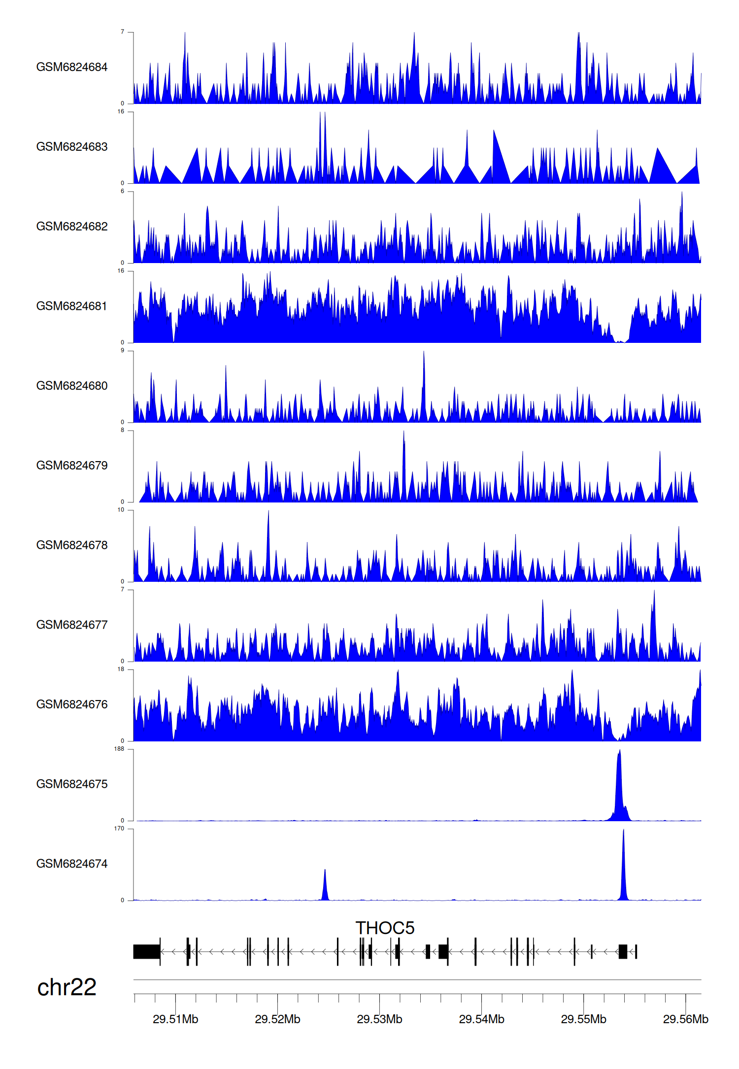 > Dataset: GSE221688 - THOC5 peak across samples