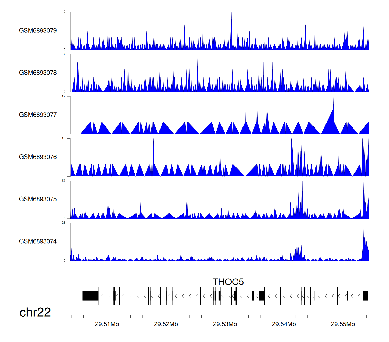 > Dataset: GSE211651 - THOC5 peak across samples
