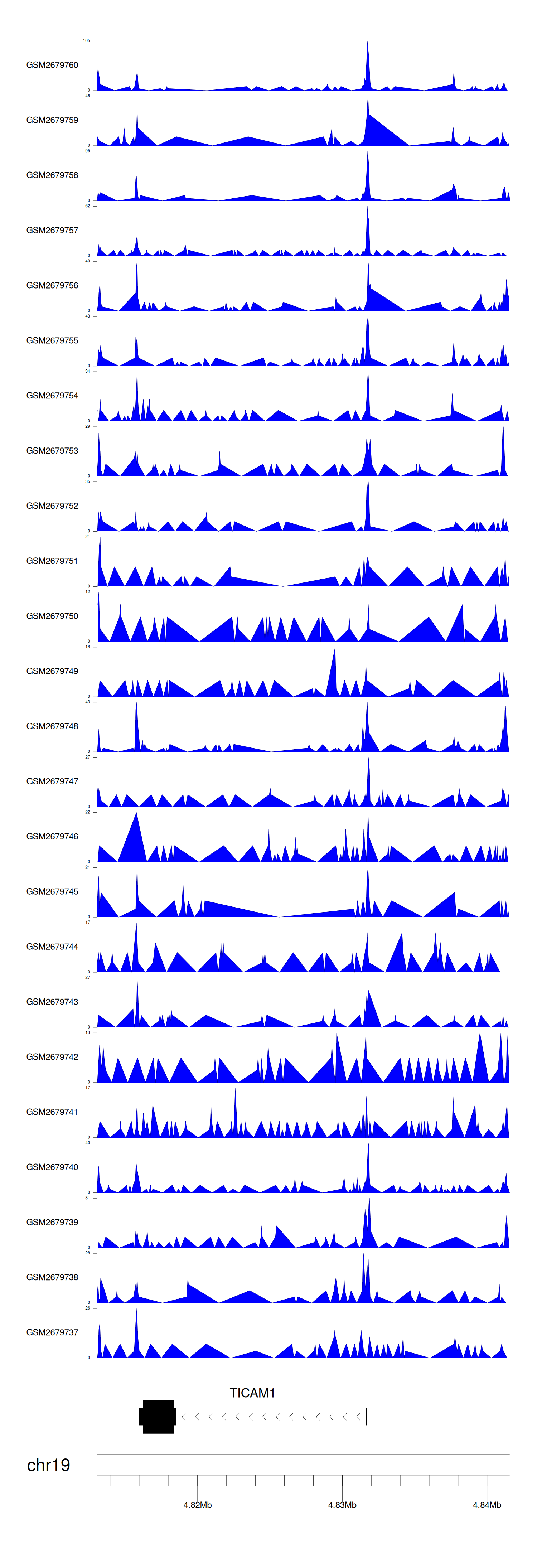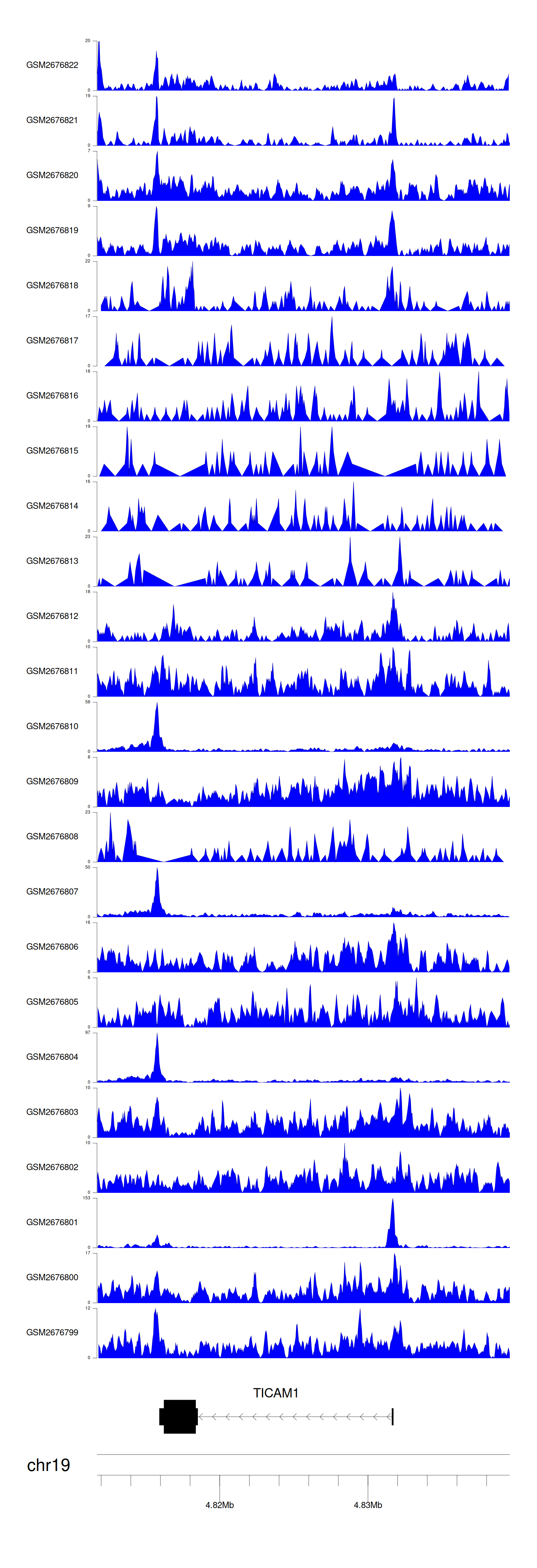 > Dataset: GSE100376 - TICAM1 peak across samples