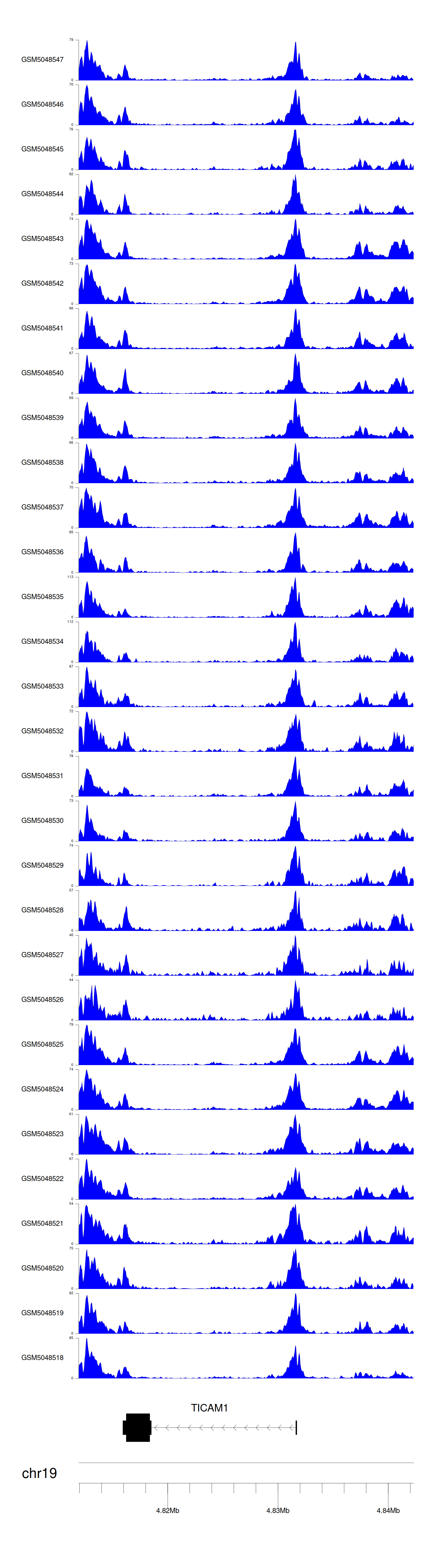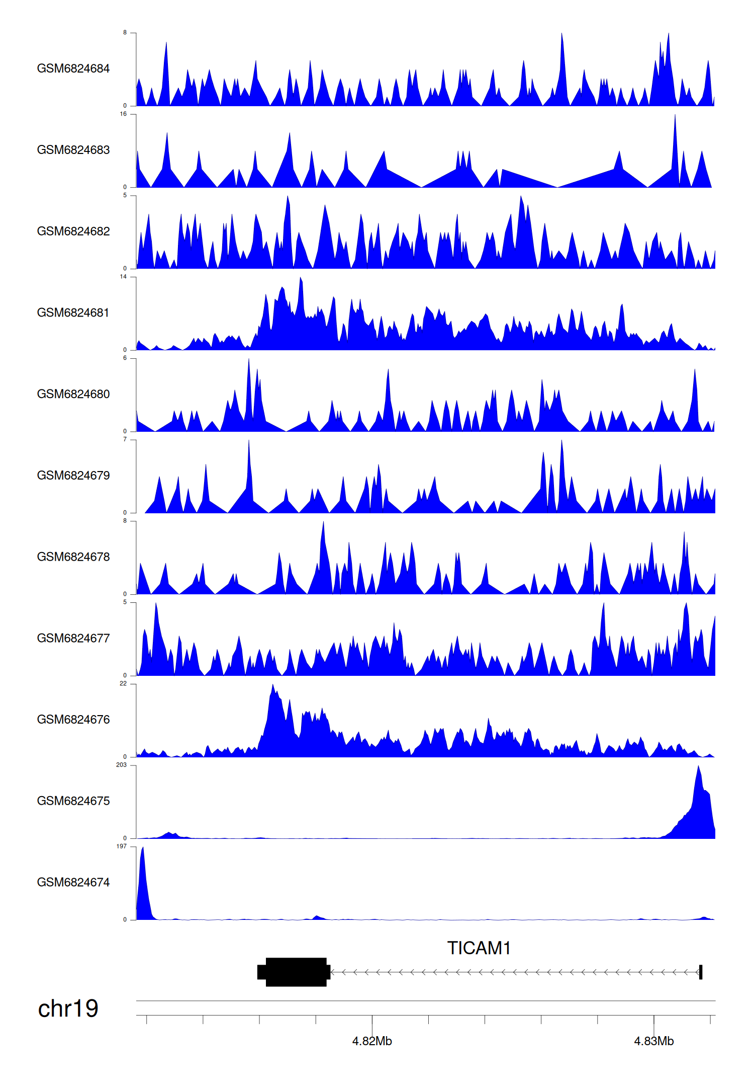 > Dataset: GSE144329 - TICAM1 peak across samples