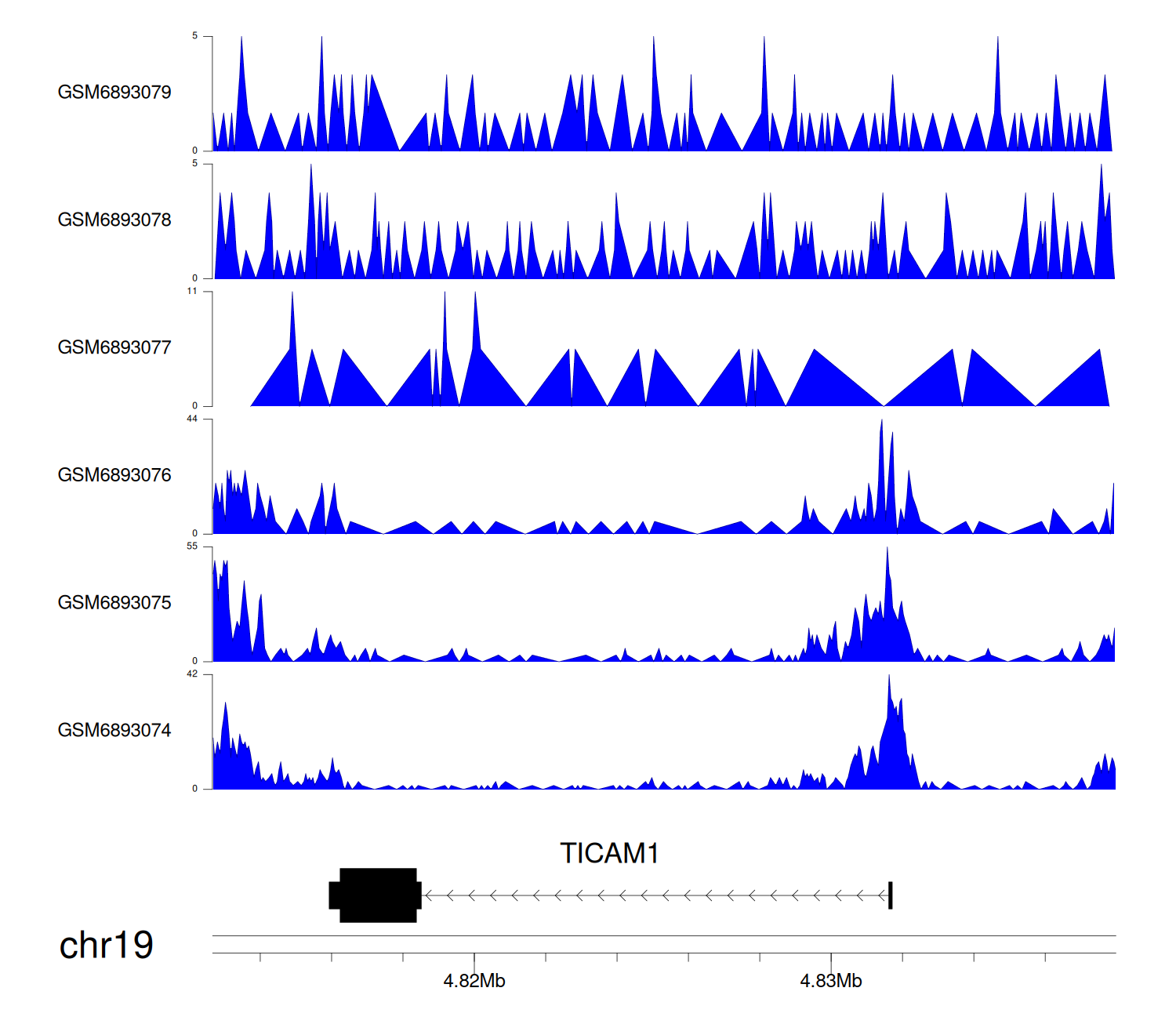 > Dataset: GSE211651 - TICAM1 peak across samples