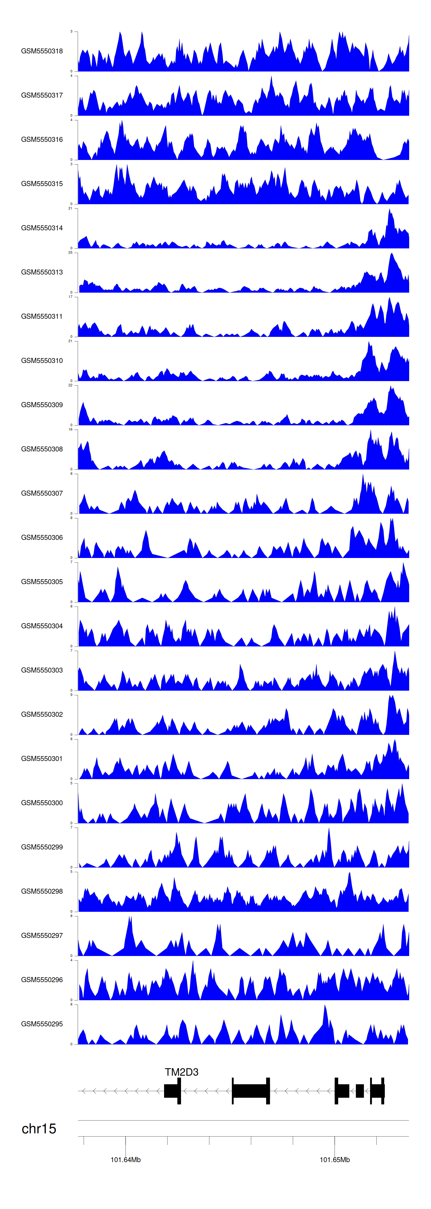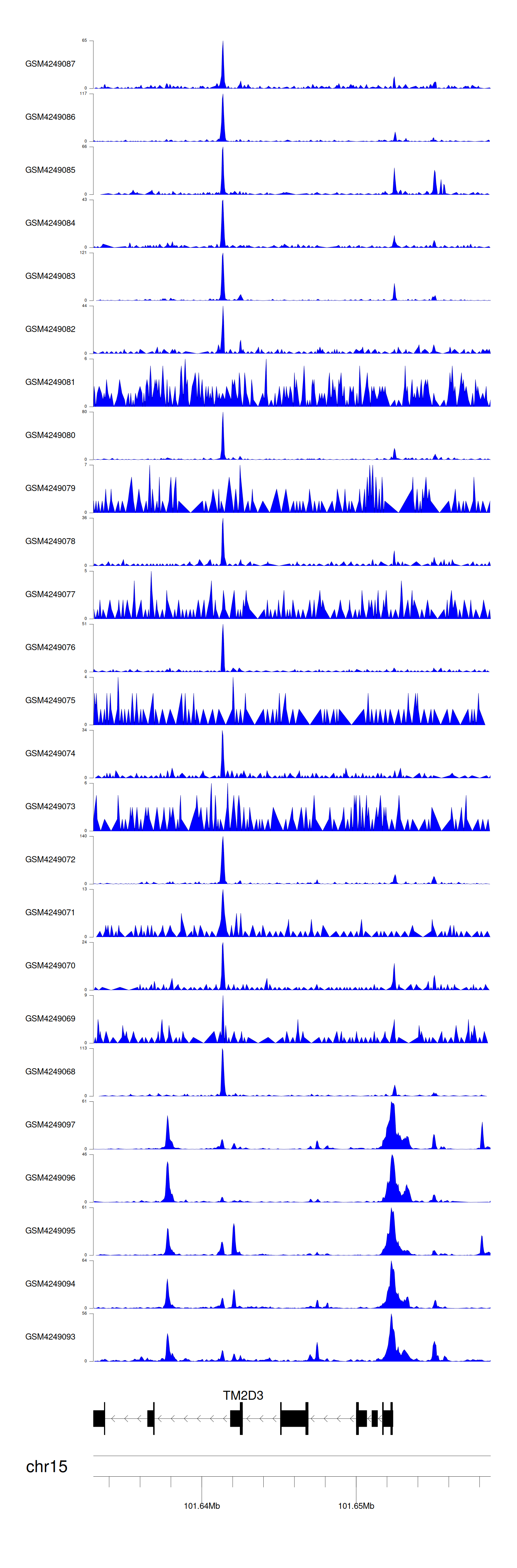 > Dataset: GSE143026 - TM2D3 peak across samples