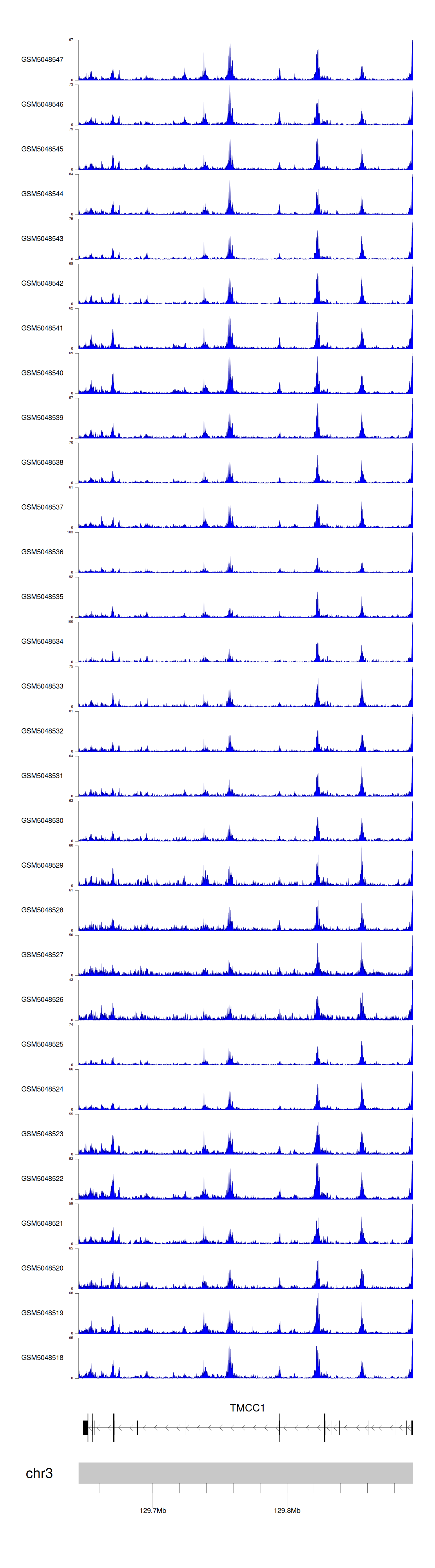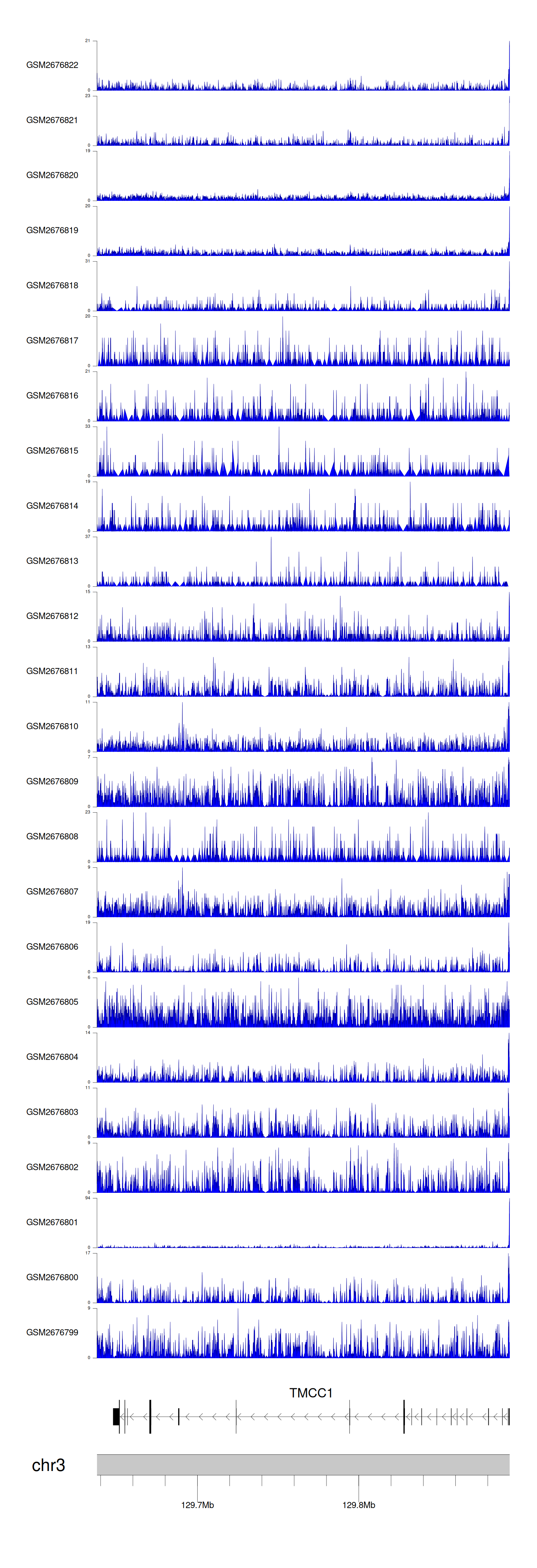 > Dataset: GSE100376 - TMCC1 peak across samples