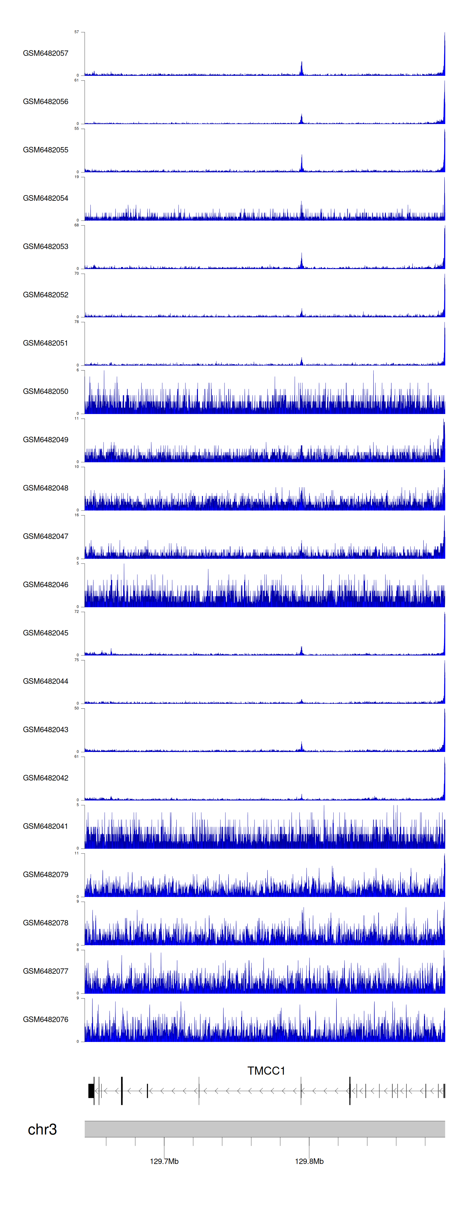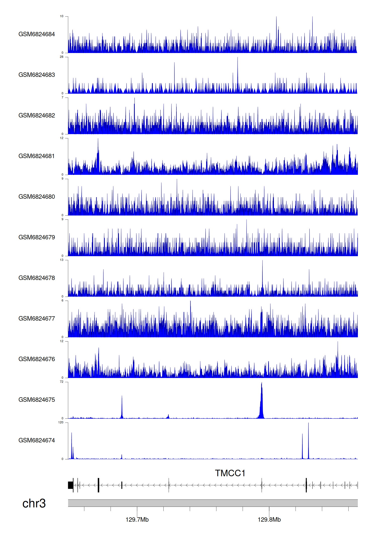 > Dataset: GSE165703 - TMCC1 peak across samples