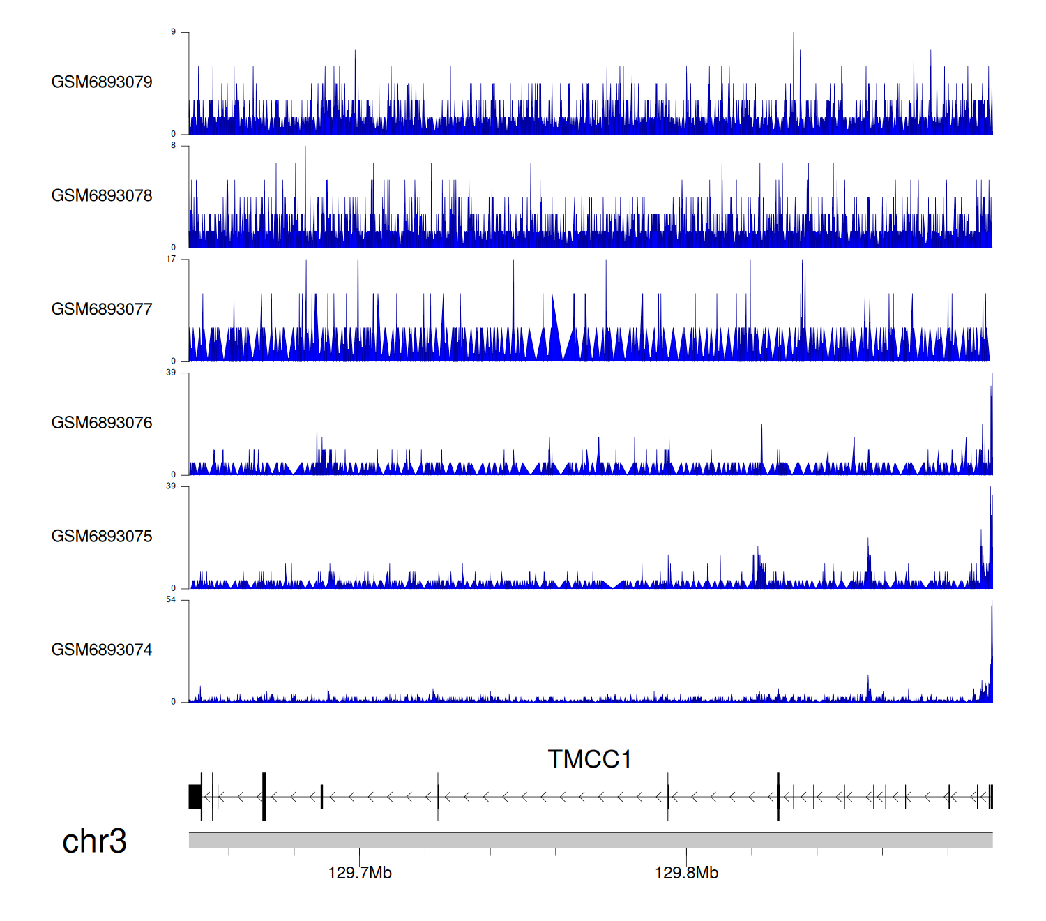 > Dataset: GSE211651 - TMCC1 peak across samples