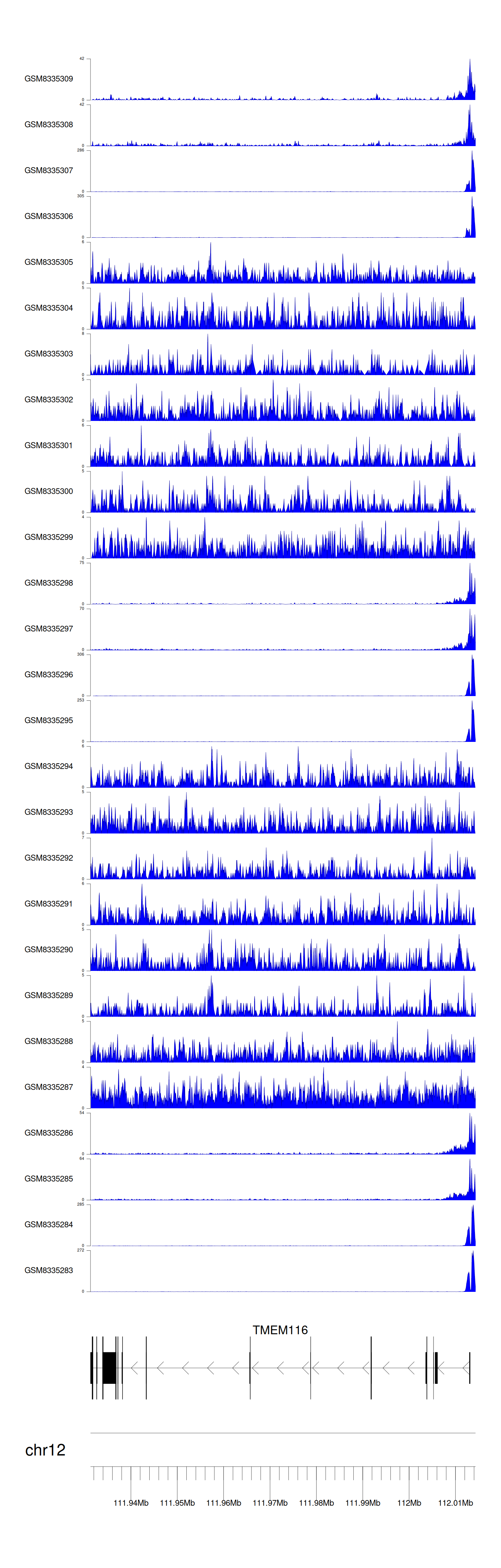 > Dataset: GSE270130 - TMEM116 peak across samples
