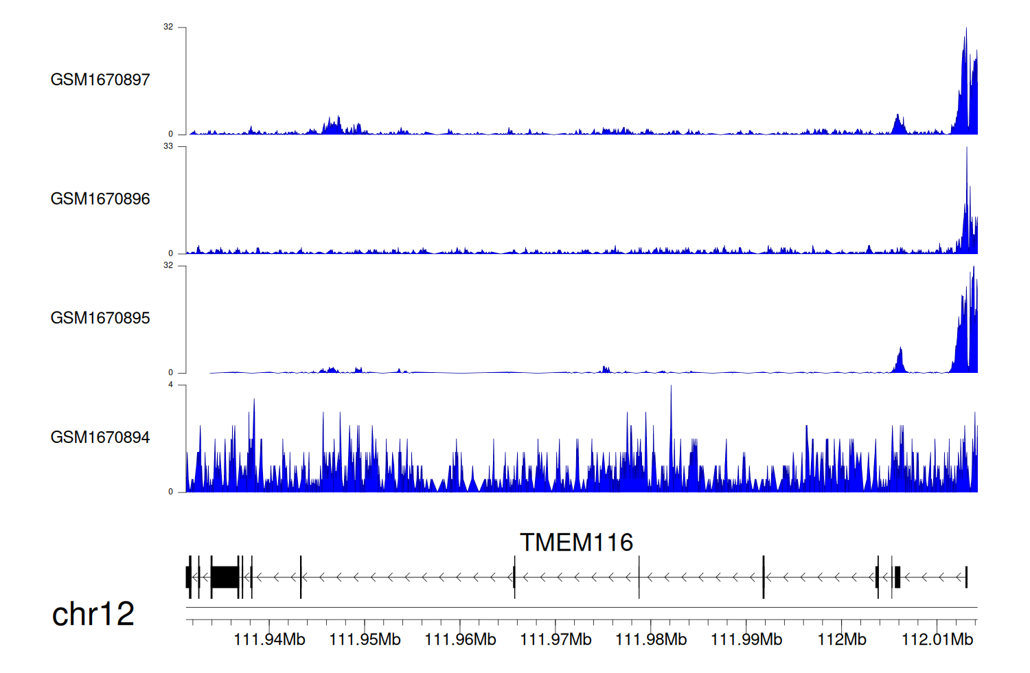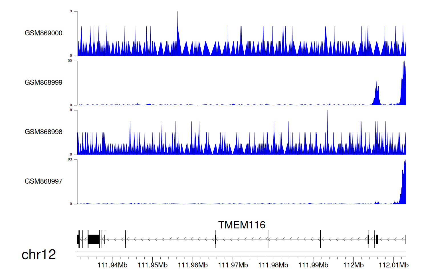 > Dataset: GSE68402 - TMEM116 peak across samples