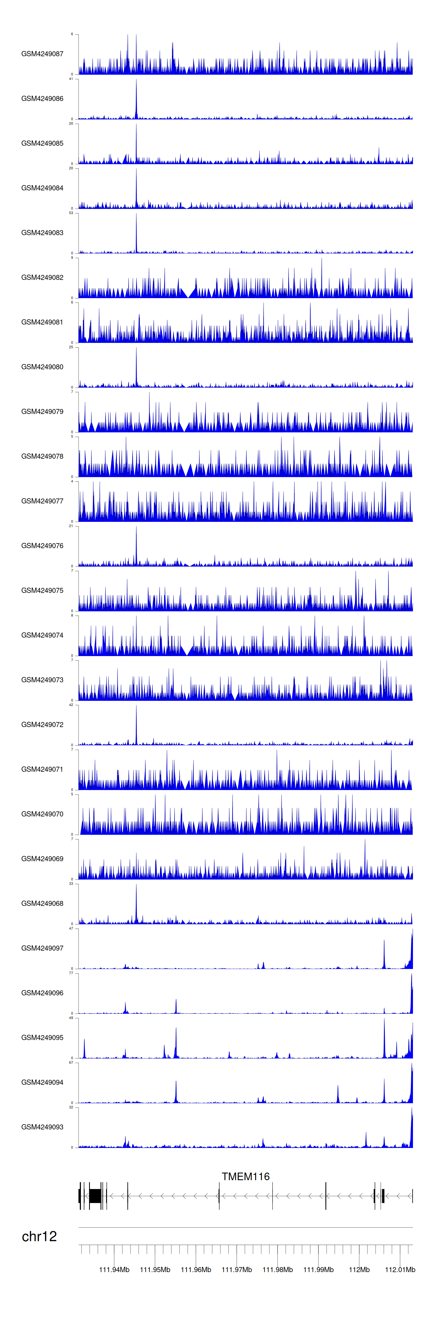 > Dataset: GSE143026 - TMEM116 peak across samples