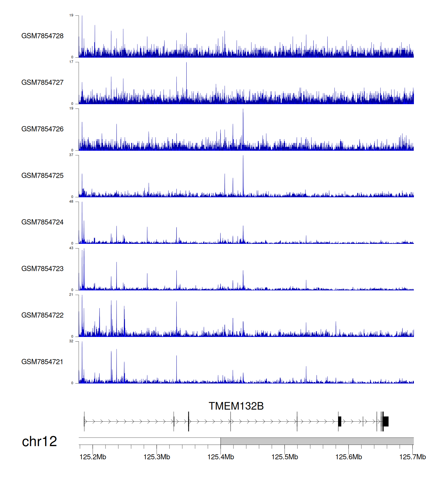 > Dataset: GSE246060 - TMEM132B peak across samples