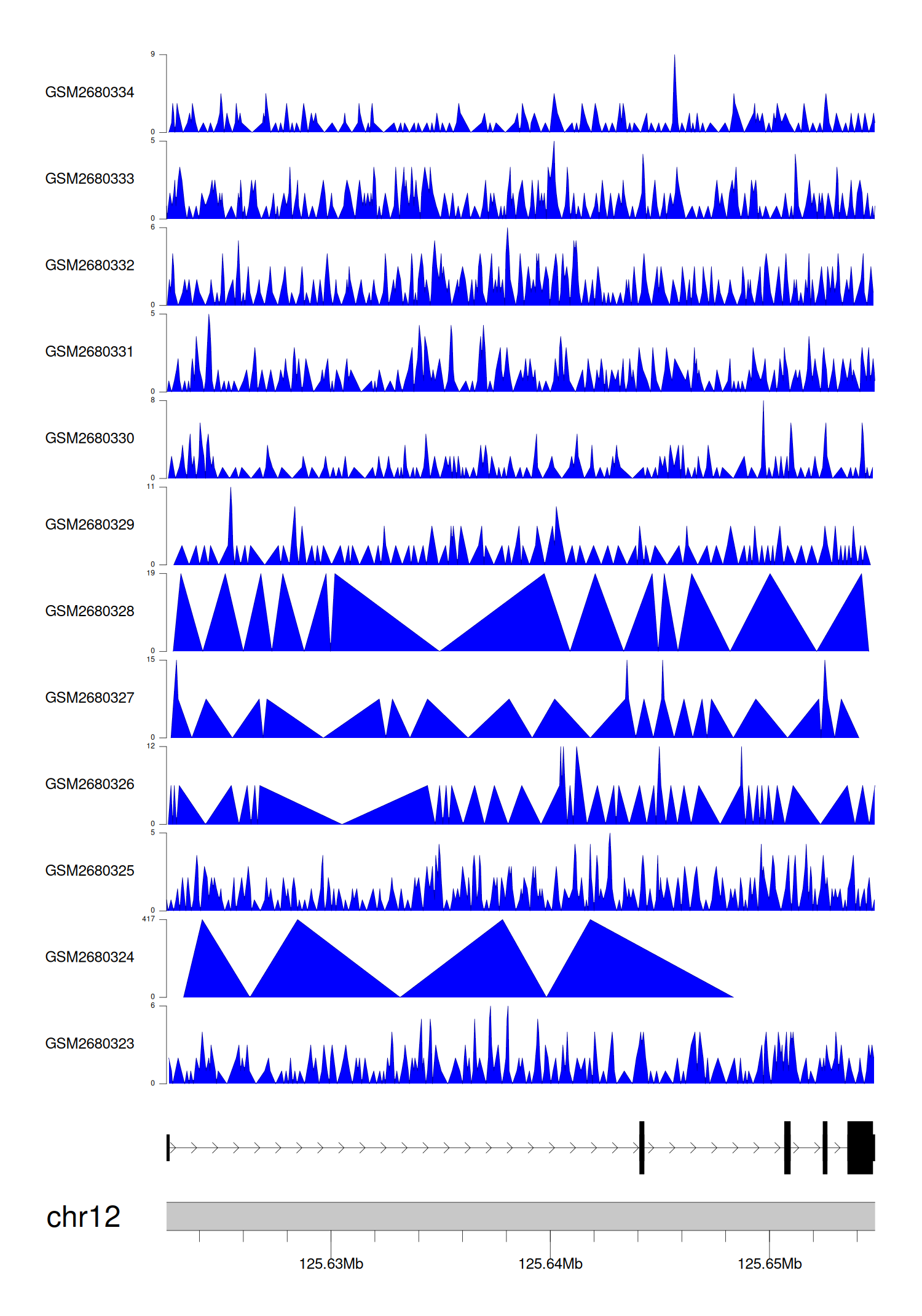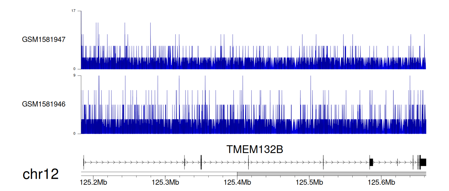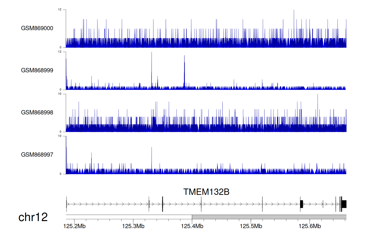 > Dataset: GSE64877 - TMEM132B peak across samples